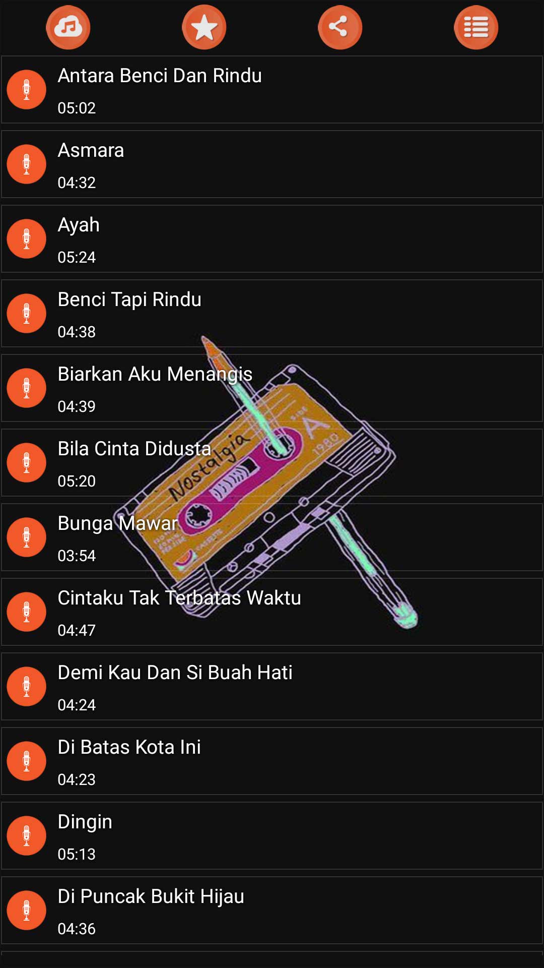 Aplikasi gratis kumpulan lagu nostalgia dan tembang kenangan populer Indonesia periode 70 an, 80 an, 90 an dan 2000 an mp3 terlengkap yang juga dilengkapi dengan vintage wallpaper jadul dan musik bisa dijadikan sebagai nada dering / ringtone. Selain versi kumpulan lagu nostalgia tembang kenangan offline yang bisa anda nikmati kapan saja dan di mana saja, di aplikasi gratis ini juga tersedia versi online yang bisa anda unduh ke HP untuk didengarkan secara offline. Berisi lagu dari penyanyi seperti broery marantika, ebiet g ade, ratih purwasih, nike ardilla, panbers, yuni shara dan lain lain.