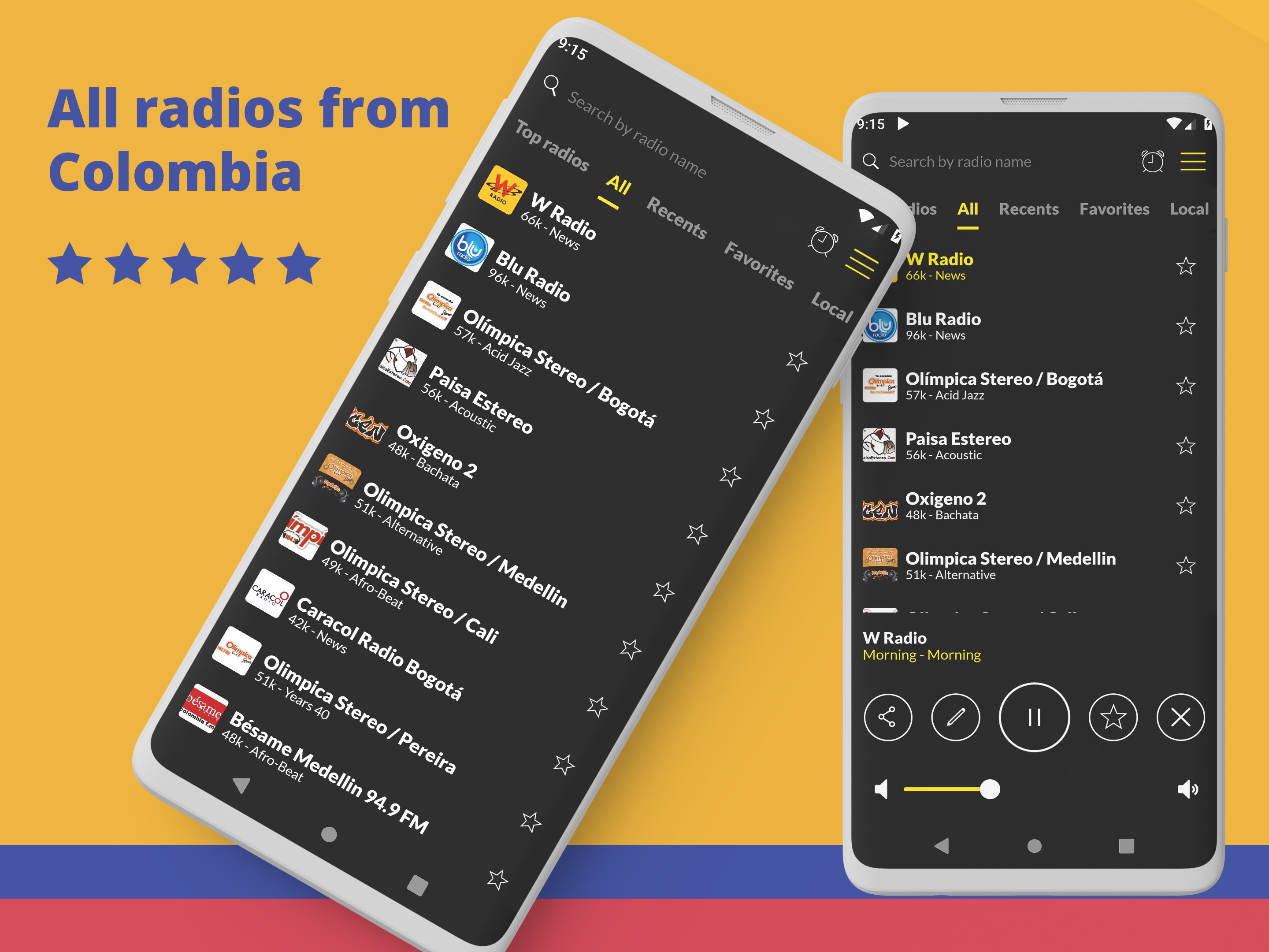 Radio Kolombia langsung, berasal dari pengembang Radioworld FM, berjalan di sistem Android di masa lalu.