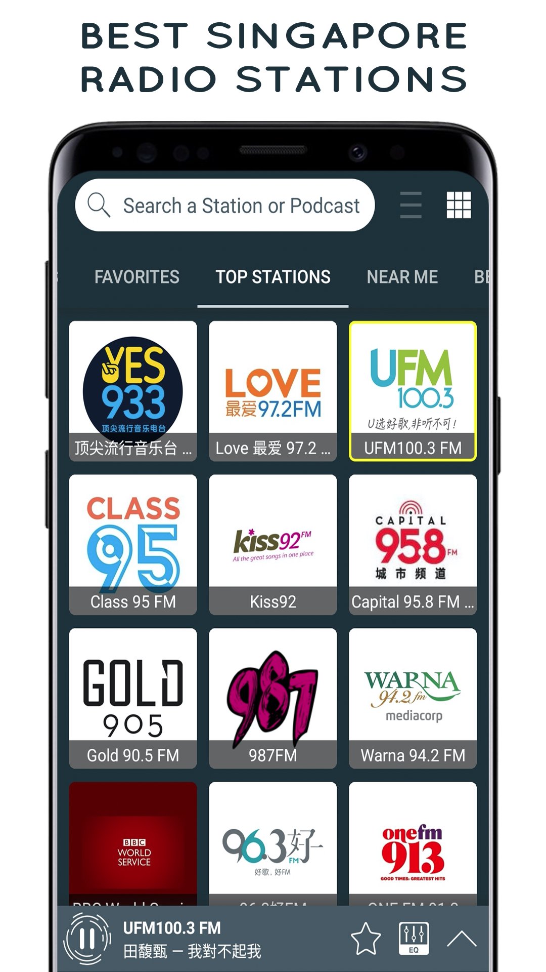 - Mendengar yang terbaik stesen radio FM di Singapore, termasuk tetapi tidak terhad kepada Radio Yes 933 FM, Class 95 FM, 987FM, Gold 90.5, Oli 96.8 FM, Kiss 92 FM, UFM 1003 FM, One FM 91.3, Power 98 FM, 88.3 Jia FM, Sinar FM;