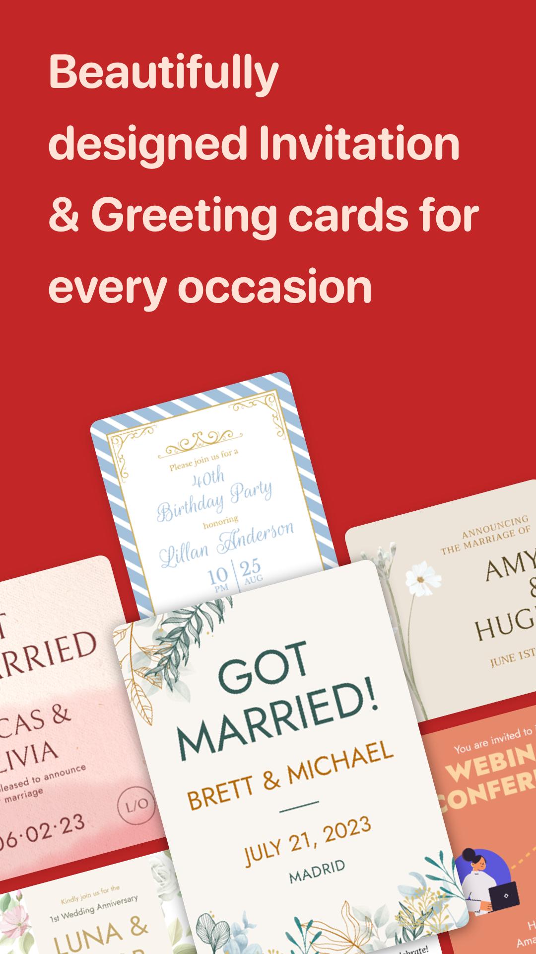 📅 Untuk Setiap Acara: Apa pun acaranya, kami siap membantu Anda! Dengan GreetArt, Anda dapat membuat kartu elektronik untuk semua kategori seperti Kartu Ulang Tahun 🎂, Kartu Pernikahan 💍, Kartu Ucapan 🎉, Kartu Terima Kasih 🙏🏻, Kartu Maaf 😔, Kartu Simpati 🙁, Kartu Pertunangan 🤵🏼♂️, Kartu Hari Jadi 👩 ❤️👨, Kartu Ucapan Selamat 🙌🏻, Kartu Liburan 🎃, dan Kartu Segera Sembuh ❤️🩹.