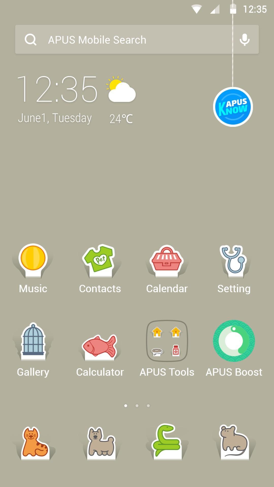 Pets-APUS Launcher theme, berasal dari pengembang CoolAppPub, berjalan di sistem Android di masa lalu.