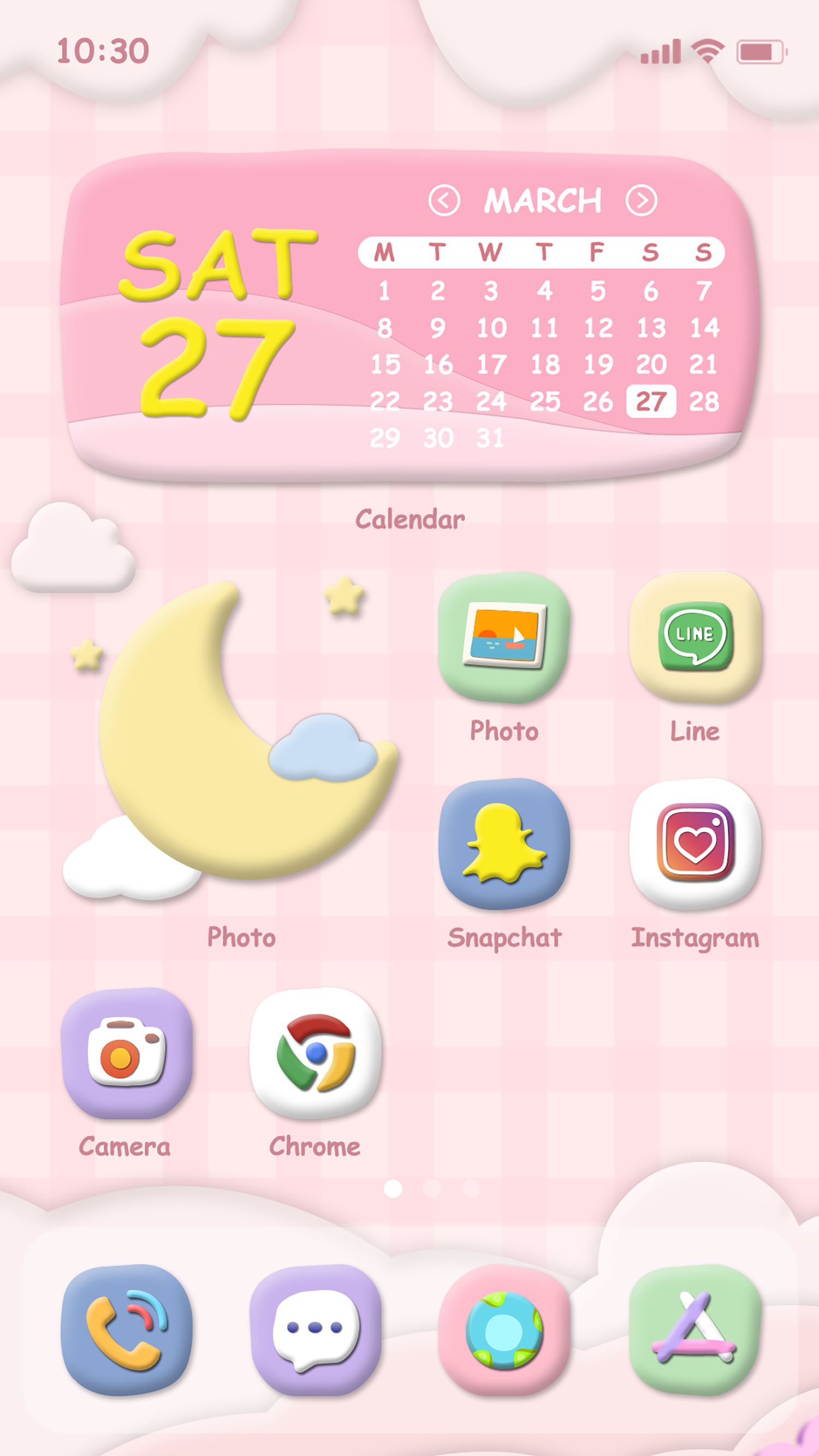 - Mendukung tiga widget: kalender, foto, jam, dan lainnya yang dirancang dengan gaya tema meong
