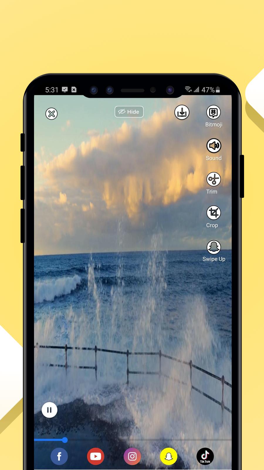 Trimming, cropping and addding filters to your video is a “snap” in SnapCam’s in-app editor. Connect your Snapchat account and add your Bitmojis directly to SnapCam Lite! Post your videos on Snapchat, Instagram, Twitter, YouTube and Facebook directly from SnapCam Lite!