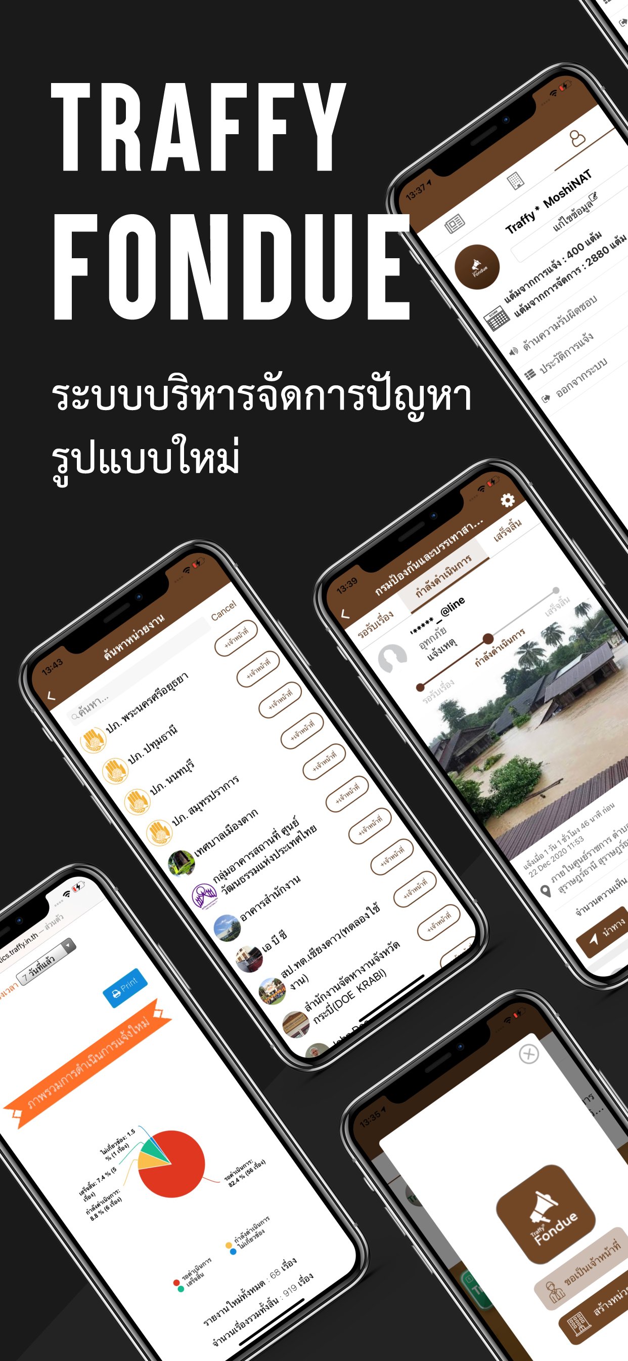 Fondue Manager: Aplikasi ini hanya untuk digunakan oleh pejabat. Menerima dan mengelola pengaduan, permasalahan, dan saran warga yang dilaporkan kepada Traffy Fondue.