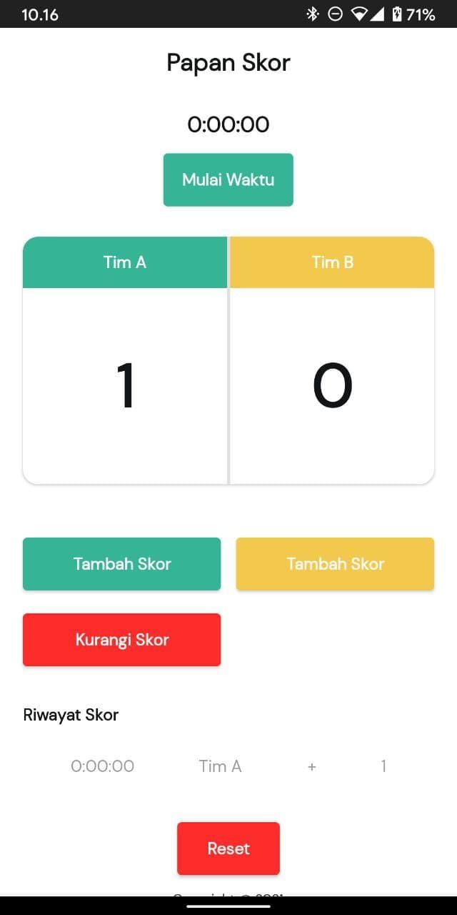 Papan Skor Olahraga aplikasi untuk mencatat skor permainan olahraga anda. mencatat skor untuk dua tim olahraga saat bertanding. anda bisa mencatat skor pertandingan batminton, sepak bola, futsal, tenis dan olahraga 2 tim lainnya.