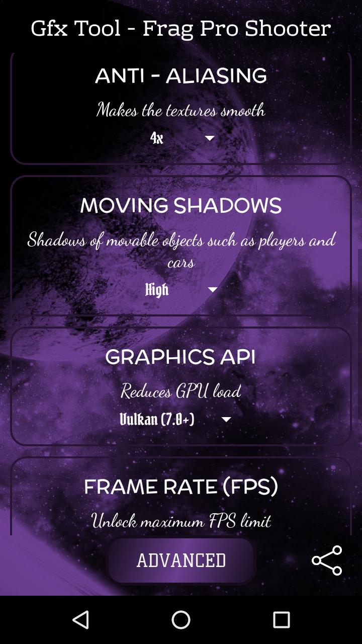 This is GFX Tool for Frag Pro Shooter Mobile Game - HDR Graphics and Unlock Maximum FPS Limit - 144 fps