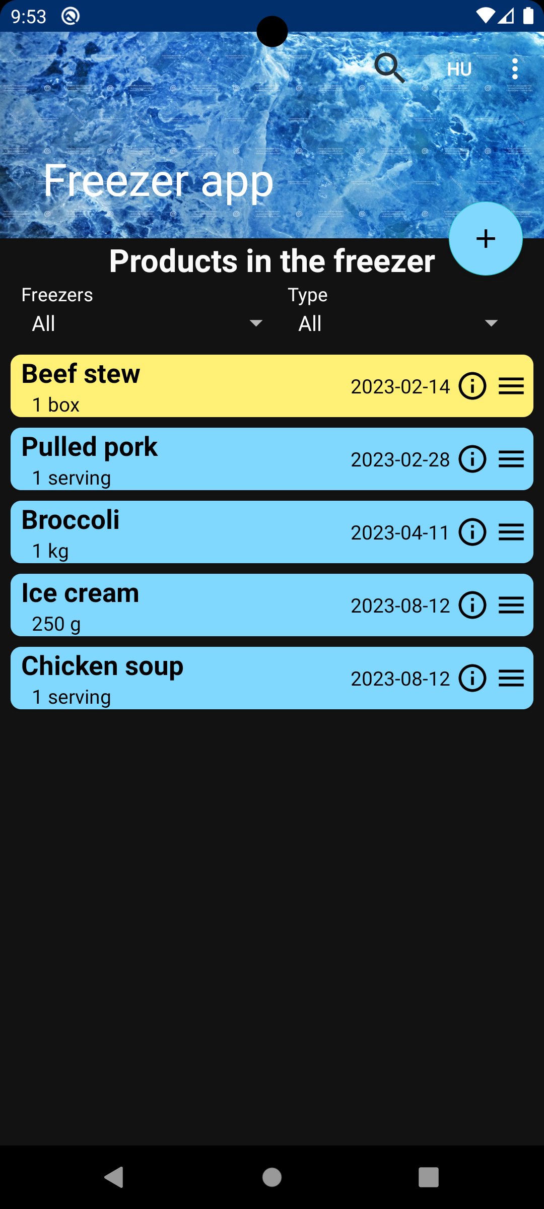 Aplikasi ini mendukung hingga 3 freezer (atau jenis penyimpanan apa pun) yang dapat Anda beri nama sesuai keinginan dan mengirimkan pemberitahuan sebelum kedaluwarsa (Anda dapat mematikan pemberitahuan jika Anda tidak ingin menerimanya dari aplikasi).