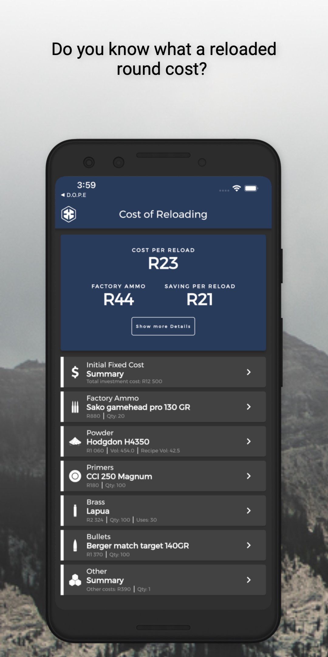 Biaya Reload memungkinkan Anda untuk melacak biaya saat Anda mengisi ulang amunisi Anda sendiri. Selain itu, bandingkan biaya pengisian ulang Anda dengan harga amunisi komersial tradisional.