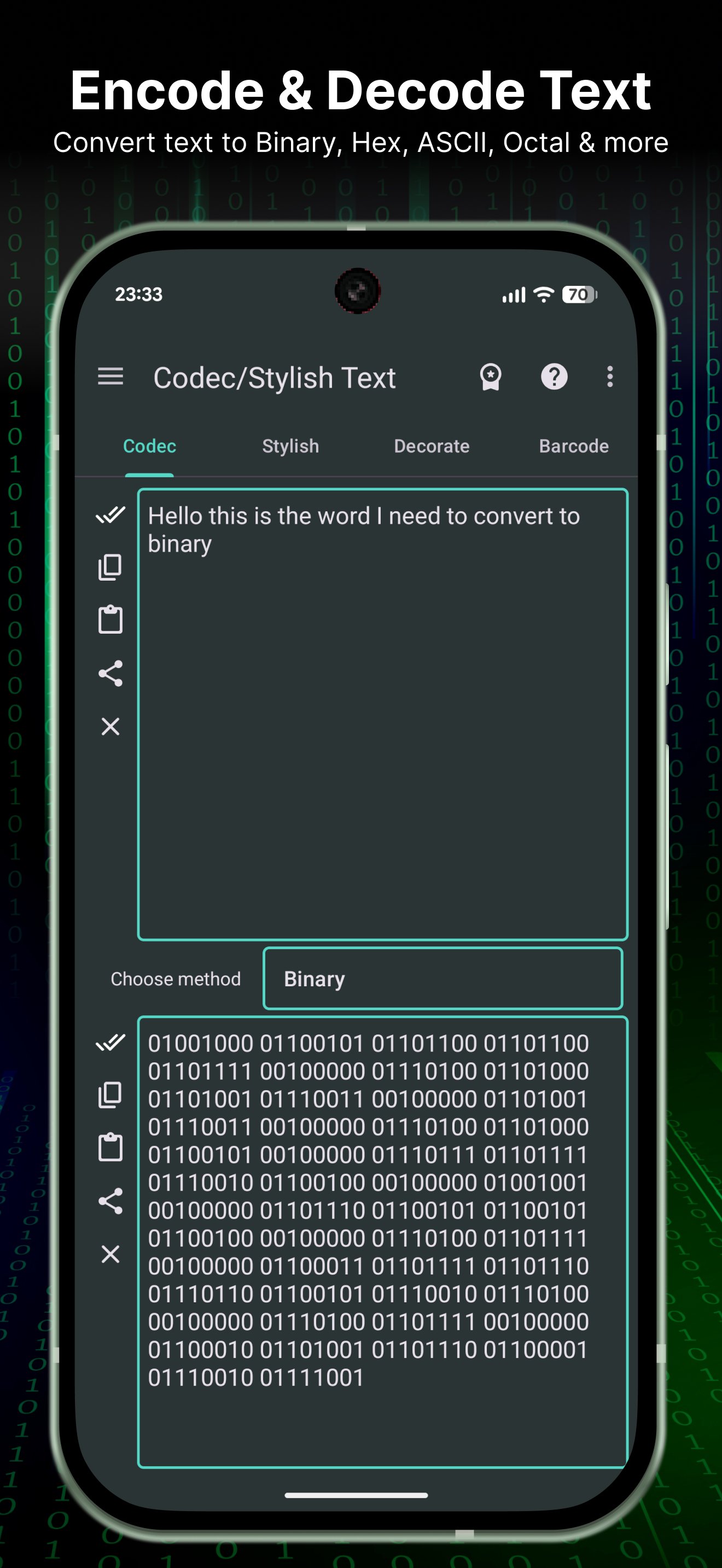 - Encode/decode pesan dan potongan teks dengan cepat