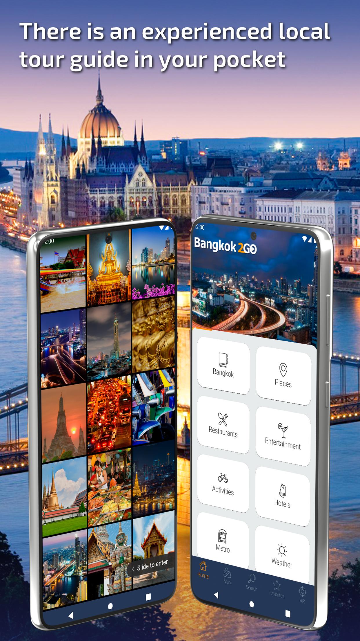 Mengunjungi kota baru? Butuh Pemandu Wisata? Era buku perjalanan "saku" telah berakhir dan era pemandu wisata digital baru yang interaktif telah dimulai! Tidak perlu yang disebut "pakar" memegang payung dan berbicara tanpa henti, apalagi "pria itu" dengan pertanyaan dangkal untuk setiap titik pemberhentian. Masa depan bersama kita! Gunakan Aplikasi Panduan Perjalanan Bangkok kami dan jadikan masa tinggal Anda di kota megah ini tak terlupakan! Rencanakan liburan Anda sebelum bepergian, temukan fakta paling menarik tentang ibu kota Thailand, wujudkan mimpi bohemian di klub malam dan restoran mewah, sambil melihat festival, konser, dan banyak lagi! Aplikasi praktis ini akan mengubah ponsel Anda menjadi panduan perjalanan seluler yang nyaman, efisien, dan informatif.