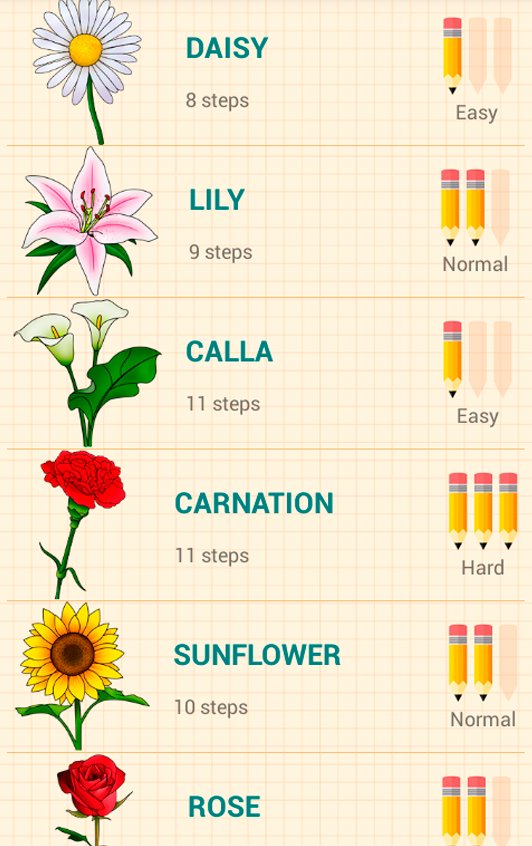 ड्रा फूल कैसे कदम से फूलों कदम आकर्षित करने के लिए आपको सिखाता है कि एक app है।