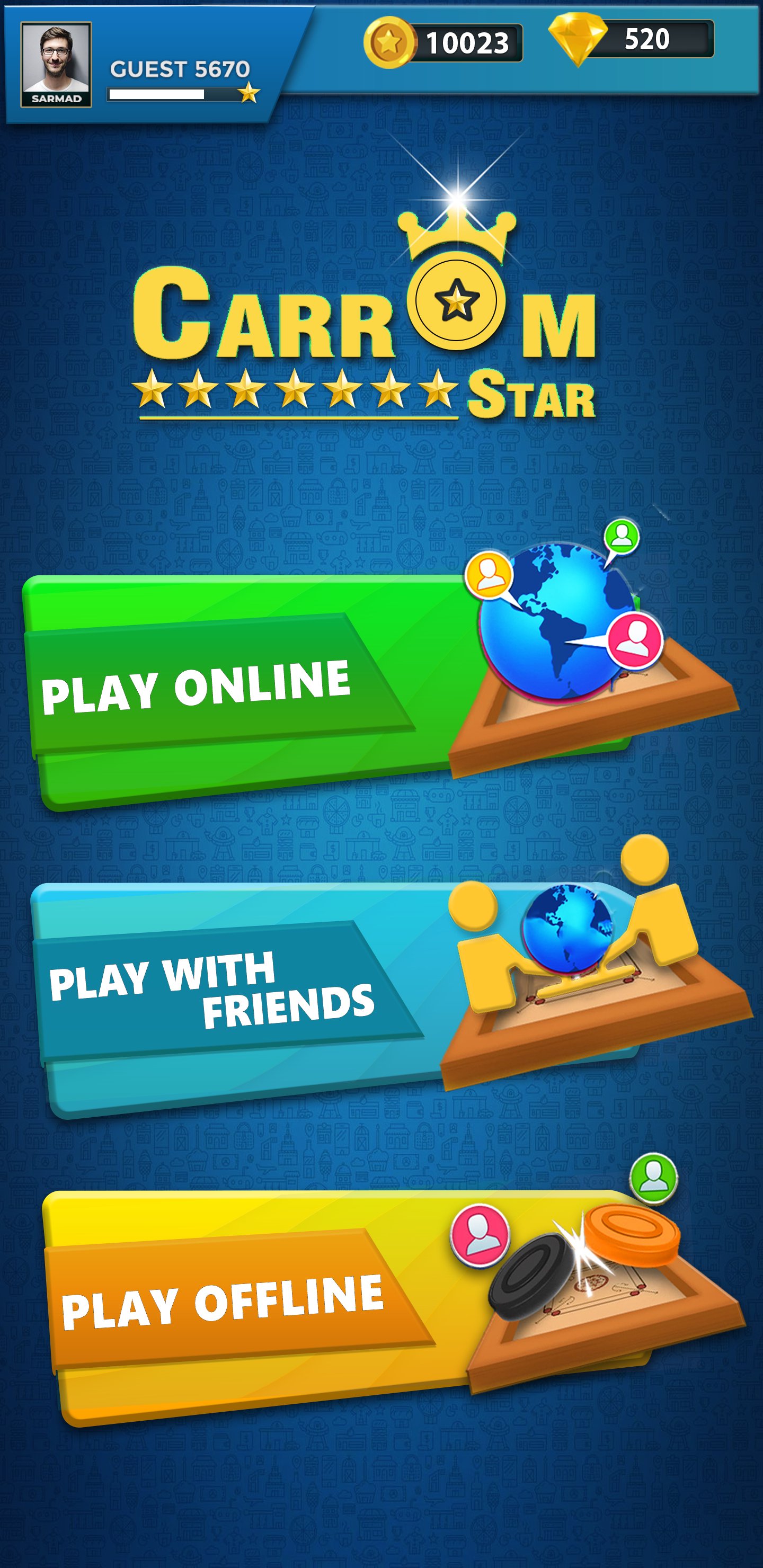 बस मुफ्त में बड़ी स्क्रीन पर Carrom Star : Multiplayer Carr पीसी का आनंद लें!