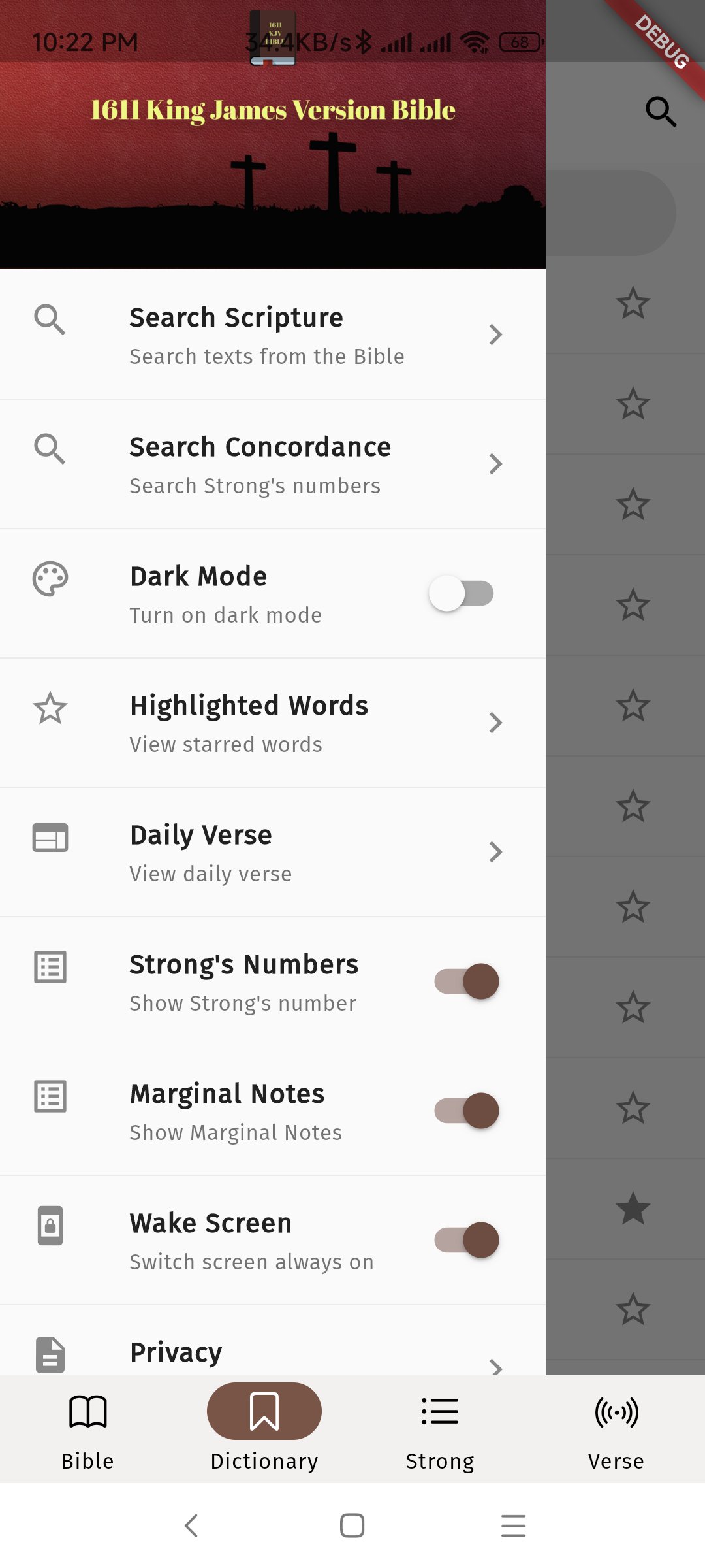 - Verse of the day feature.