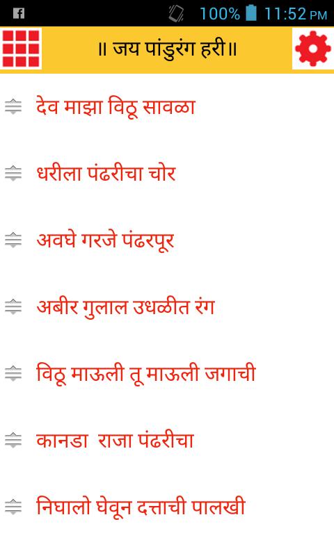 यह ऐप प्रसिद्ध मराठी अभंग, भानन, गौलन और भक्तिगीत का संग्रह प्रदान करता है।