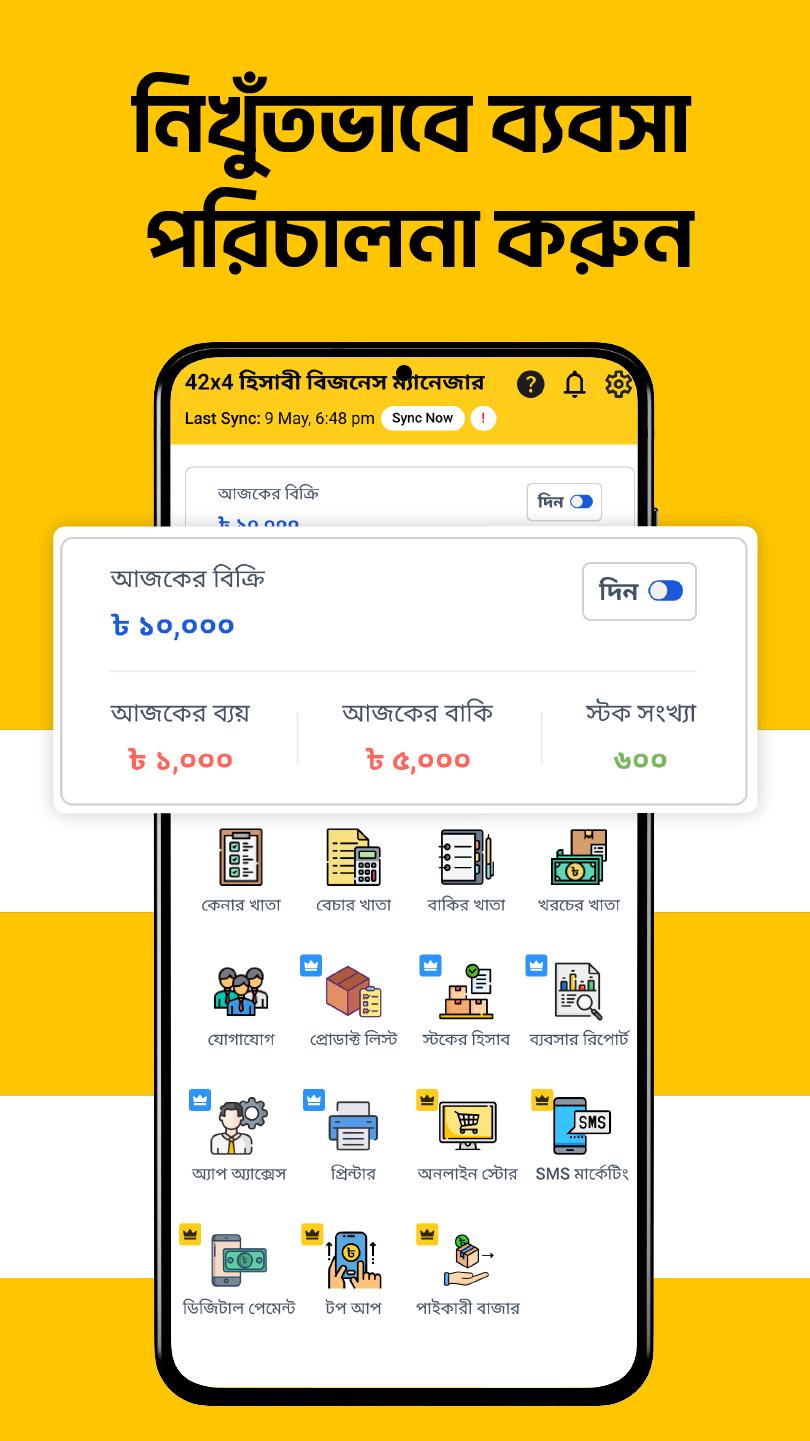 अकाउंट्स ऐप के साथ आसानी से अपने व्यवसाय का प्रबंधन करें और सभी दैनिक लेनदेन पर नज़र रखें। बांग्लादेश में 3,00,000 से अधिक व्यवसायी अकाउंटिंग ऐप का उपयोग कर रहे हैं, और अपने व्यवसाय को सही और सटीक तरीके से प्रबंधित कर रहे हैं।