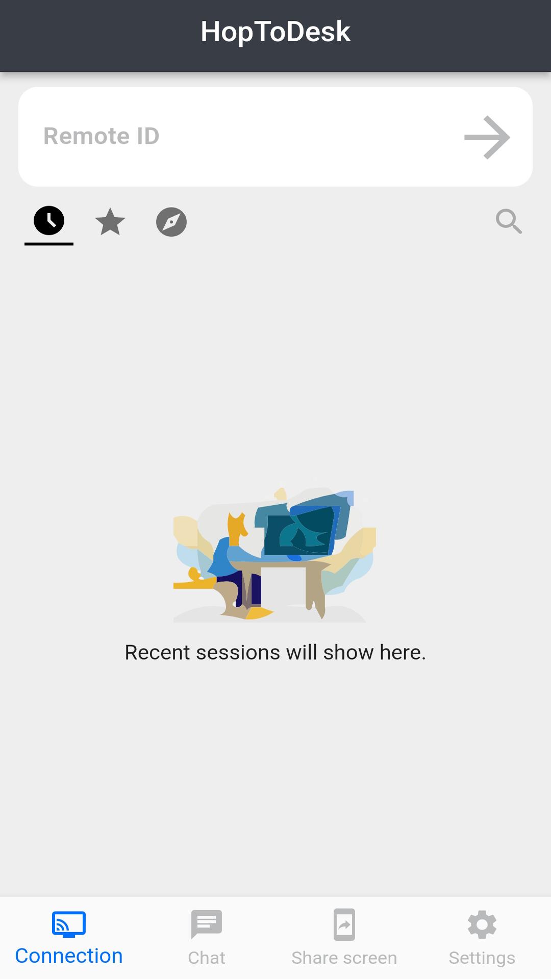 1. दोनों डिवाइस पर HopToDesk इंस्टॉल करें और खोलें।