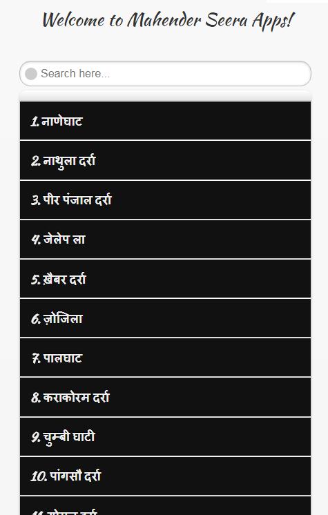 इस अप्प में आप दर्रे और घाटियाँ के बारे में सम्पूर्ण जानकारी प्राप्त कर सकते हे।