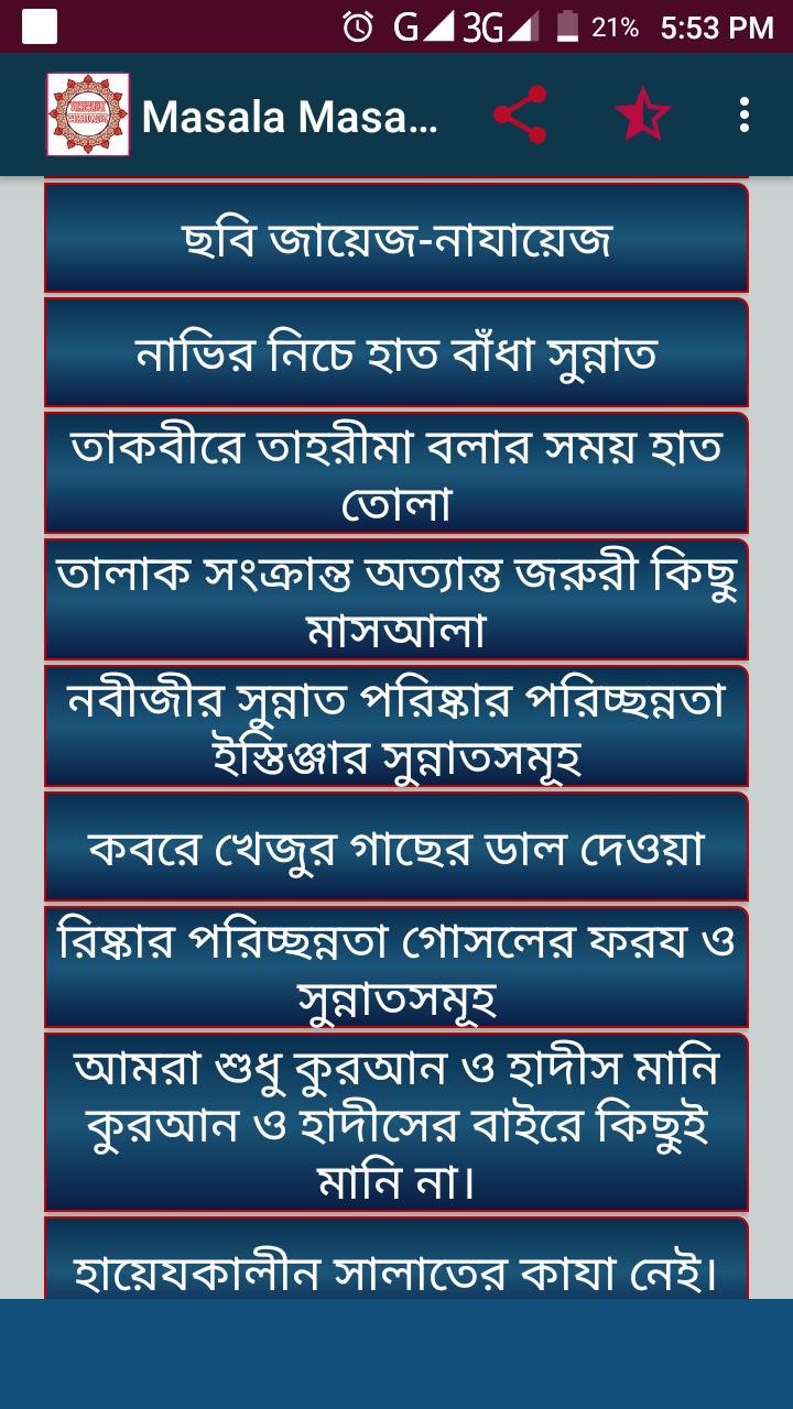 * ইসলামের সকল মাসালা মাসায়েল খুব সহজে উল্লেখ করা হয়েছে