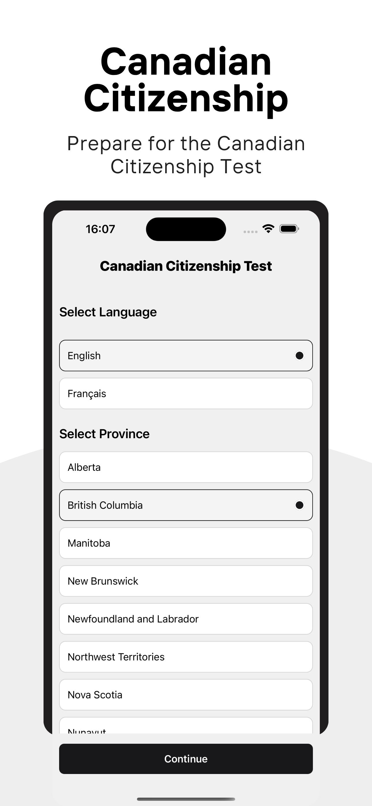 इस ऐप में सभी जानकारी और प्रश्न आधिकारिक गाइड: "कनाडा की खोज करें - नागरिकता के अधिकार और ज़िम्मेदारियाँ" पर आधारित हैं, जो यहाँ उपलब्ध है: