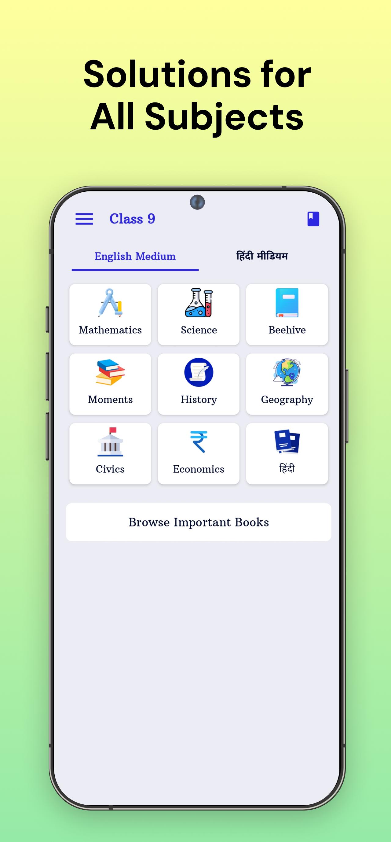 1. पाठ्यपुस्तकें और समाधान: प्रत्येक अध्याय के लिए चरण-दर-चरण समाधान के साथ कक्षा 9 की सभी पाठ्यपुस्तकों के डिजिटल संस्करणों तक पहुंच, जिससे गणित, विज्ञान, सामाजिक अध्ययन, अंग्रेजी और हिंदी जैसे विषयों की अवधारणाओं को समझना और उनमें महारत हासिल करना आसान हो जाता है।