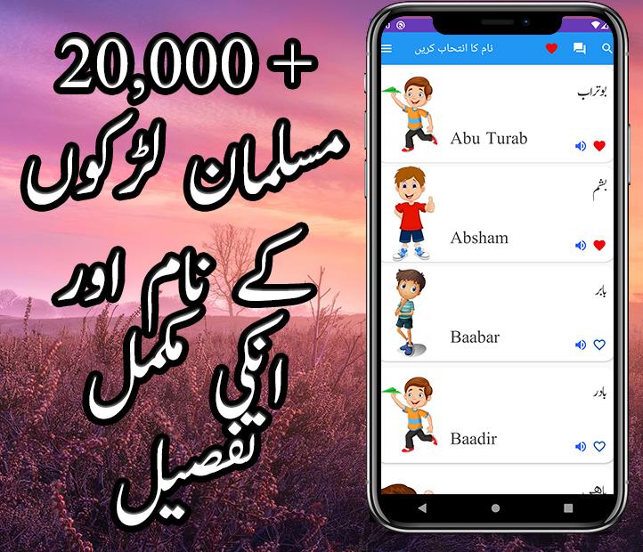 आप बीस हजार मुस्लिम लड़कों के नाम खोज सकते हैं, बस उनके नाम की वर्तनी अंग्रेजी या उर्दू में लिख सकते हैं, मुस्लिम लड़के के नाम सभी नाम से संबंधित विवरण खोजने के लिए एक बहुत अच्छा ऐप है जो माता-पिता के लिए अपने लड़के के नाम चुनने में बहुत मददगार हो सकता है।