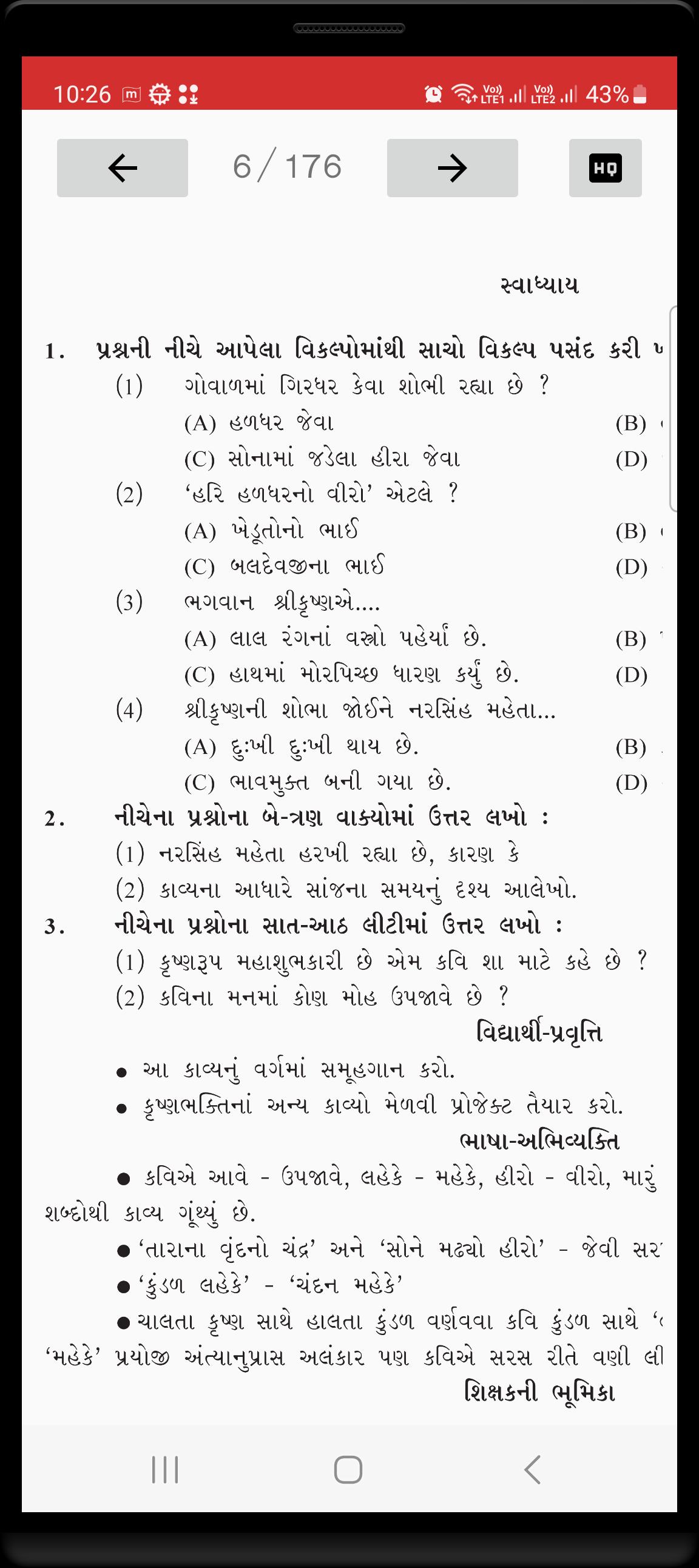 एमसीक्यू क्विज़ में गुजराती माध्यम मानक 6 से 9 के प्रश्न और एक पंक्ति के प्रश्न उत्तर प्रारूप।