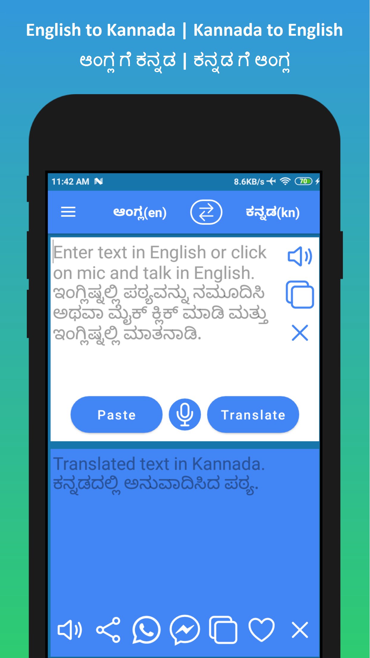 ✓ हमारे निःशुल्क अंग्रेजी से कन्नड़ अनुवादक ऐप का उपयोग करके आसानी से अंग्रेजी पाठ का कन्नड़ में अनुवाद करें। आप कन्नड़ से अंग्रेजी अनुवाद भी कर सकते हैं।