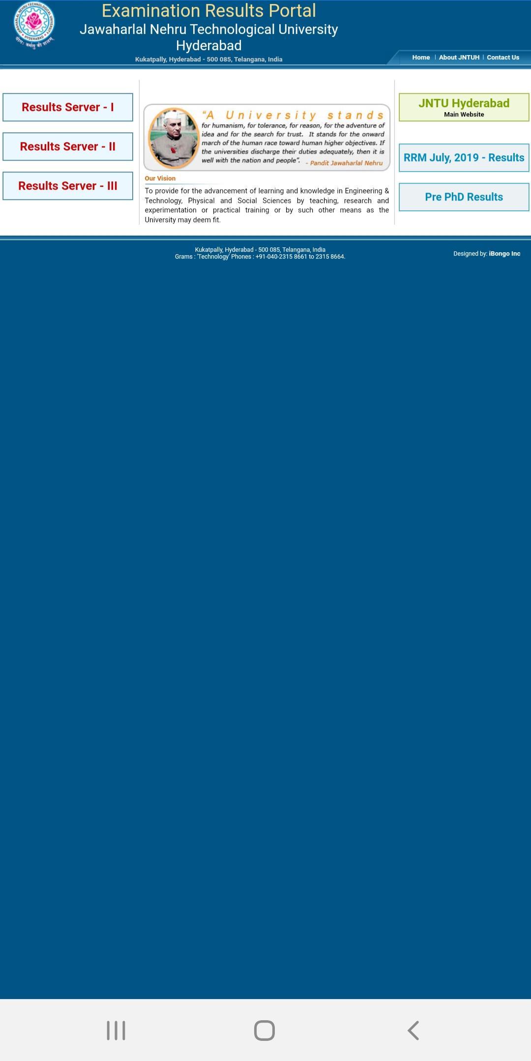 JNTUH official results app(for all MBA,Btech, Mtech,MPharm, BPharm&MCA Students.) This is the best and fast app to find your results. JNTUH was founded in 1965 as the Nagarjuna Sagar Engineering College, it was established as a university in 1972 by The Jawaharlal Nehru Technological University Act, 1972. The university is situated at Kukatpally Housing Board Region in Hyderabad of India.By installing this app you agree to the following privacy policies: