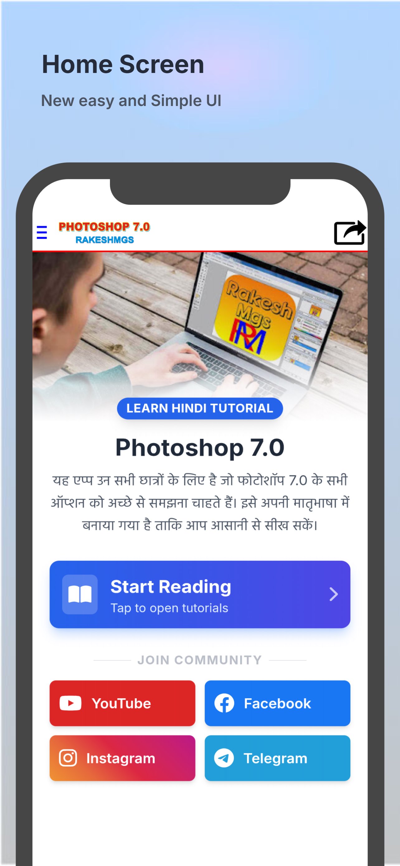 यह ऐप आपको संपूर्ण टूल और मेनू नोट्स के साथ फोटोशॉप स्टेप बाय स्टेप सीखने में मदद करता है।