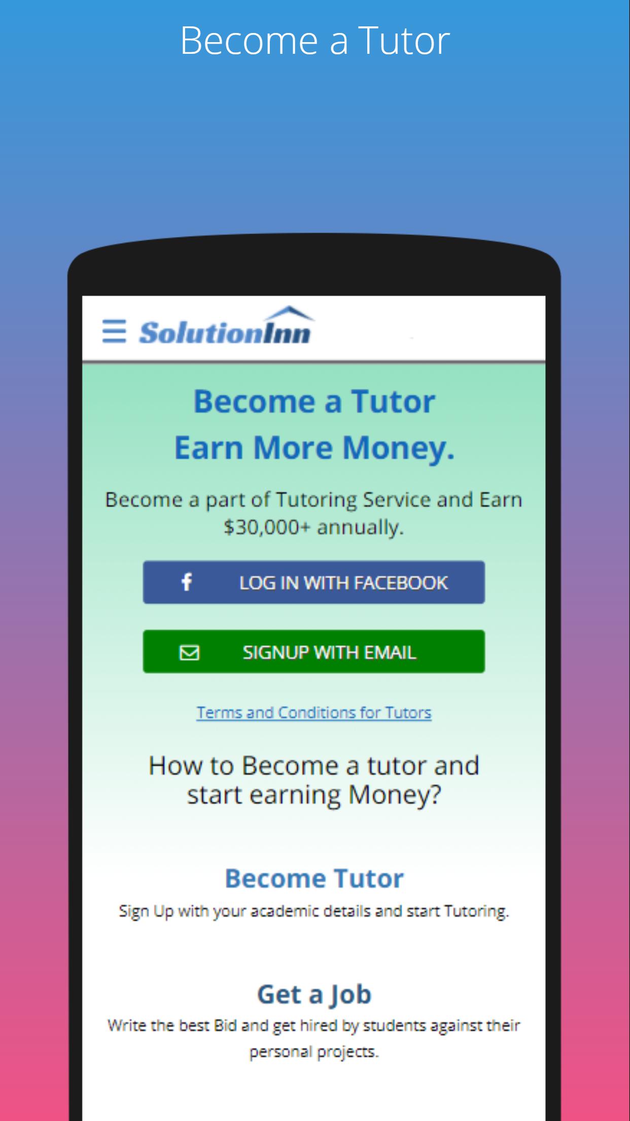 Become Tutor: Sign Up at SolutionInn as a Tutor by providing only a few personal and academic details, and step in your Tutoring career.