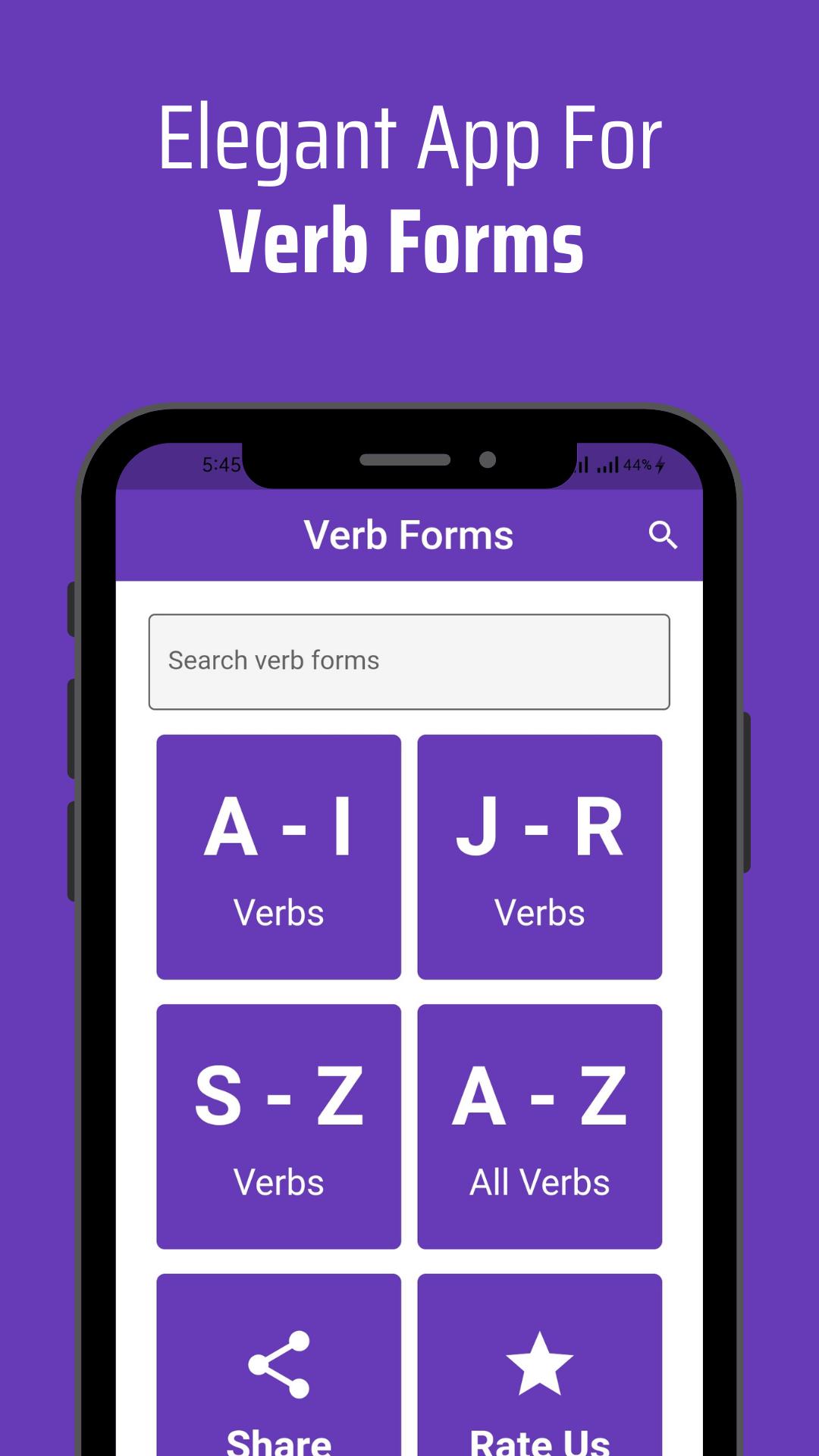 आवेदन गुजराती अर्थ के साथ 1300+ अंग्रेजी क्रिया रूप प्रदान करता है। दैनिक जीवन में हजारों सबसे आम क्रियाओं के साथ अंग्रेजी सीखें।