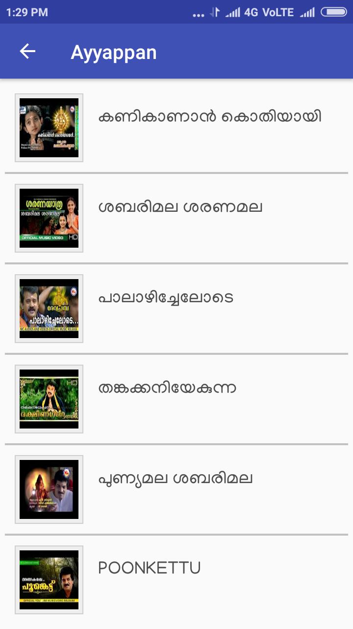 मलयालम भक्ति एप्लिकेशन मलयालम प्रभु अम्मान पर, भगवान अय्यप्पन, भगवान शिव, भगवान मुरुगन, भगवान कृष्ण में एकल place.Devotional गीत, दक्षिण से कम से भक्तों के लिए विभिन्न श्रेणियों के तहत विभिन्न भक्ति मामलों प्रदान करता है। कई और अधिक उन्नी मेनन, मधु बालकृष्णन, ज येशुदास, मग स्रीकुमर और सहित विभिन्न पौराणिक कलाकारों के गीतों को एप्लिकेशन की सुविधा है। तो मलयालम में भक्ति गीत का भावपूर्ण संग्रह का आनंद लें।