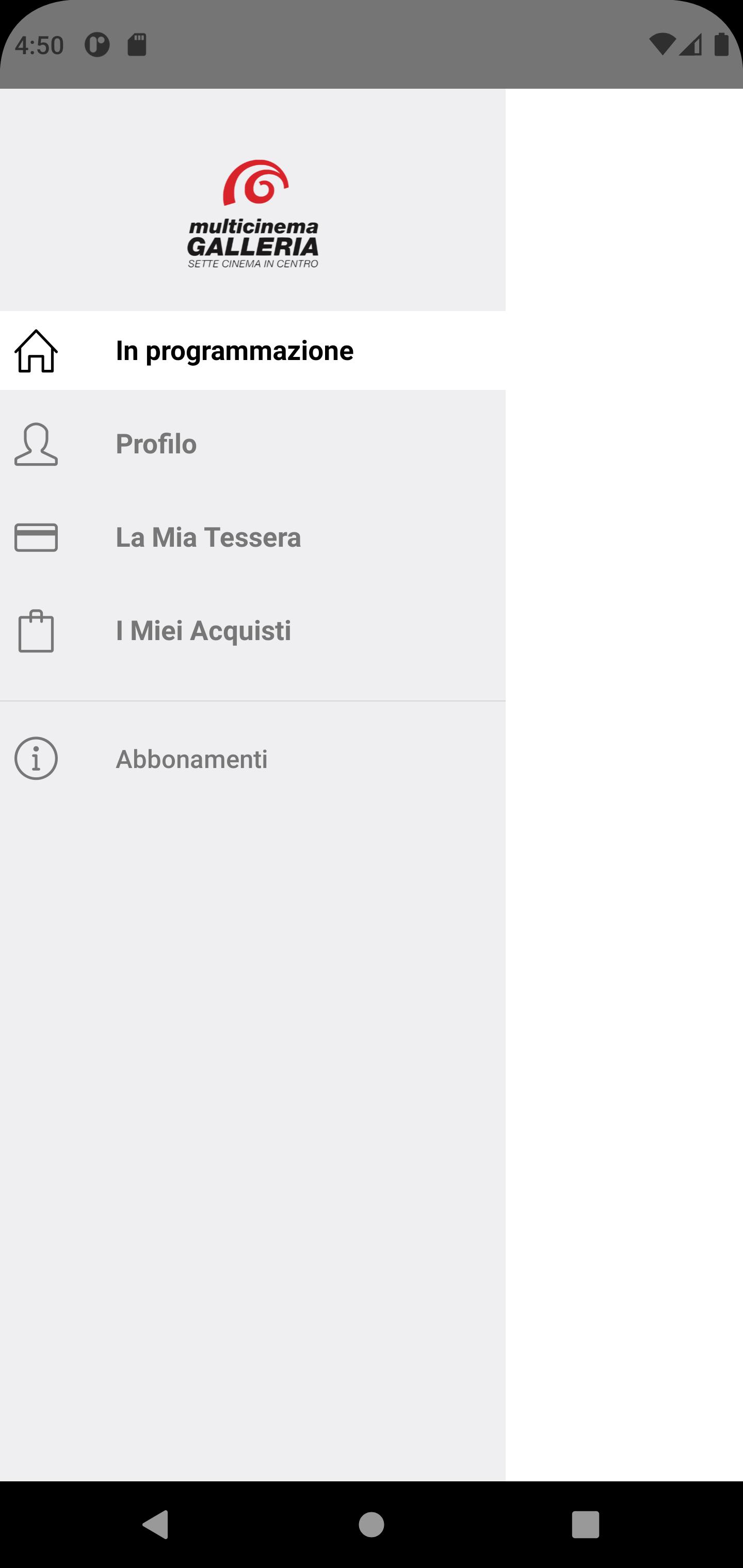 मल्टीसिनेमा गैलेरिया डि बारी के लिए मोबाइल एप्लिकेशन, एप्लिकेशन आपको विभिन्न शो के लिए प्रोग्रामिंग, खरीद और टिकट बुक करने की सलाह देता है।