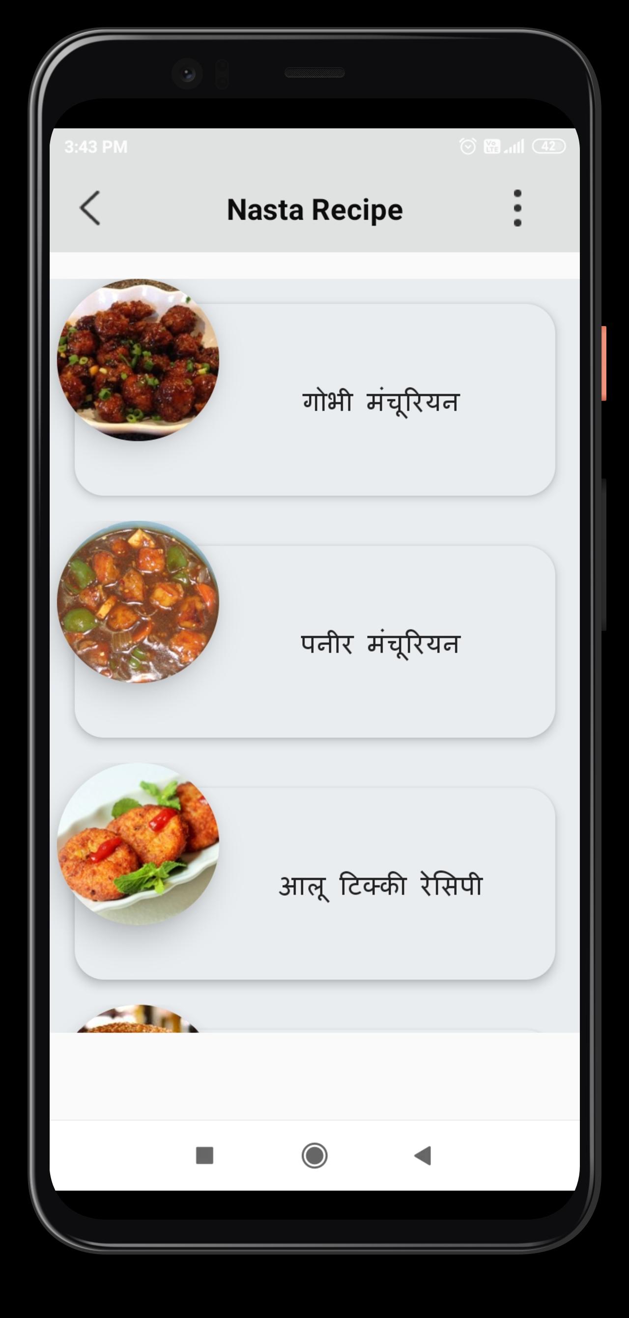 This application provides you the collection of best and various types of Nasta recipes in hindi language.