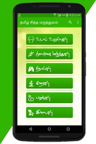 यह ऐप शारीरिक अंगों, मुलिगाई, रोग, केराइगल, फल, पत्ते के आधार पर तमिल सिद्ध मराथुवाम के बारे में अधिक जानकारी देता है।