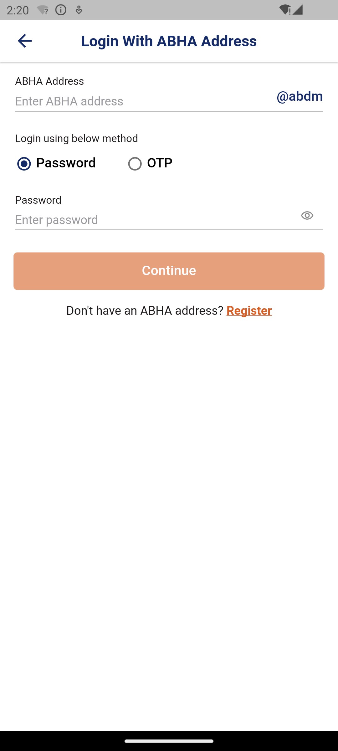 . मोबाइल नंबर, ईमेल आईडी या ABHA नंबर के साथ याद रखने में आसान आभा पता (उपयोगकर्ता नाम@abdm) बनाएं।