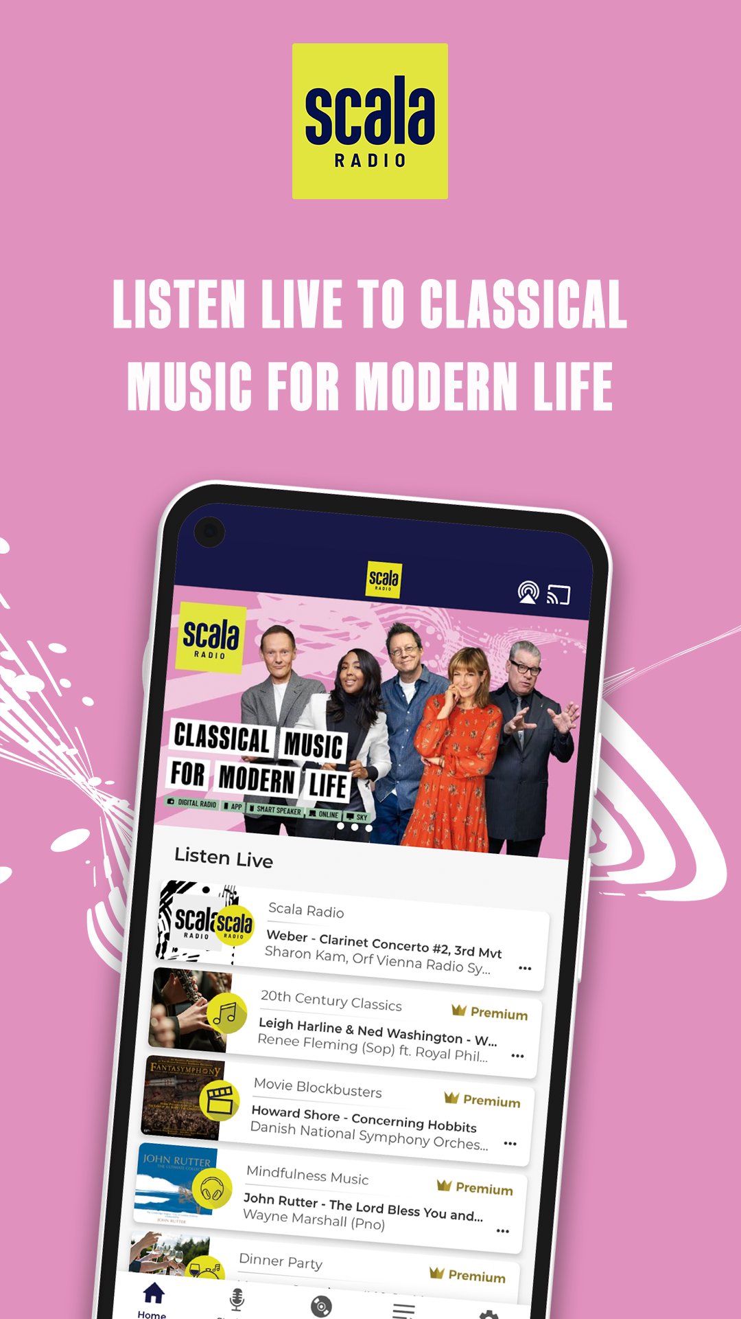 स्काला रेडियो पूरे ब्रिटेन में शास्त्रीय संगीत के सांचे को तोड़ रहा है। मोजार्ट, बीथोवेन और बाख जैसे जाने-माने उस्तादों के साथ, आप जस्टिन टिम्बरलेक, लेड ज़ेपेलिन और की पसंद के द्वारा फिल्म, टीवी और वीडियो गेम स्कोर, संगीत से शोट्यून्स और पॉप और रॉक गीतों के वाद्य री-वर्किंग सहित समकालीन कार्यों को सुनने की उम्मीद कर सकते हैं। दुआ लीपा।