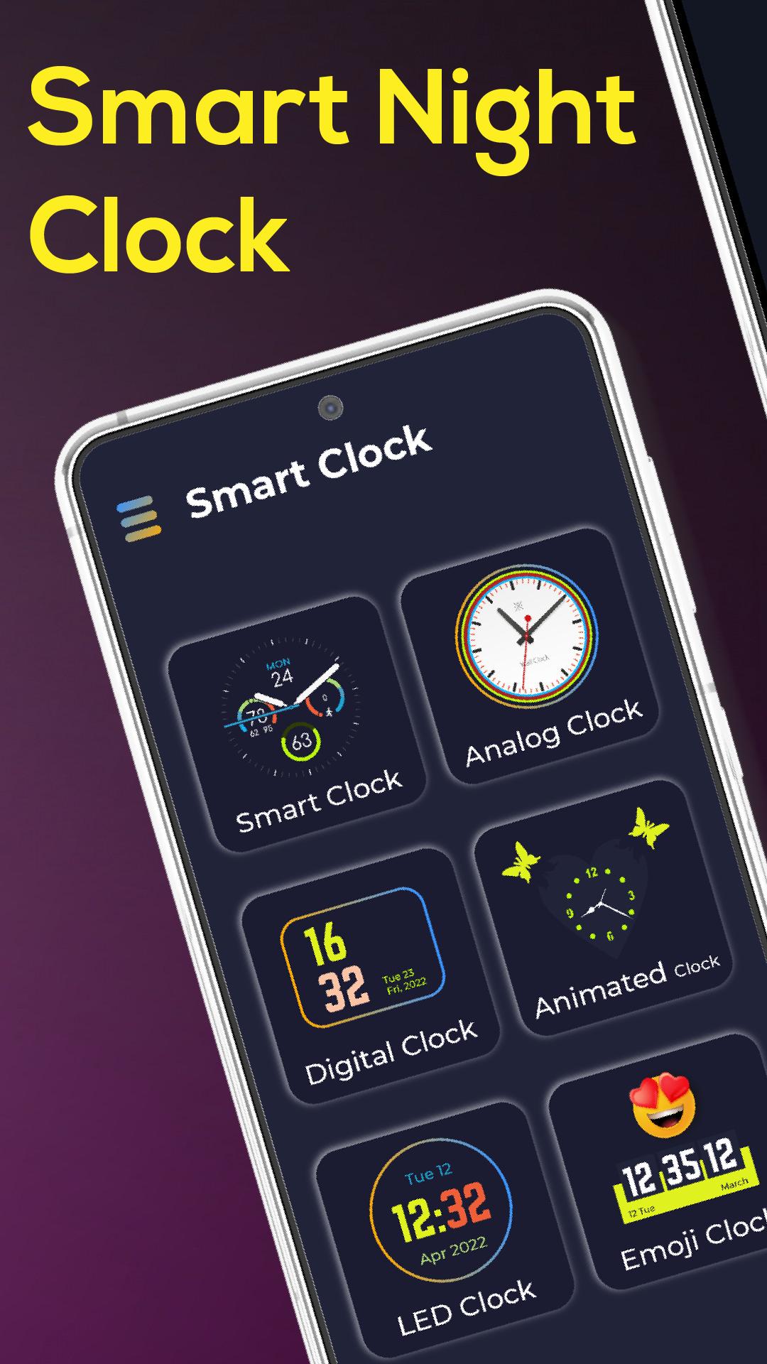 Various categories of clocks are available, like analog clocks, digital clocks, LED clocks, smart clock, Animated clocks, emoji clocks, with live clock wallpapers.