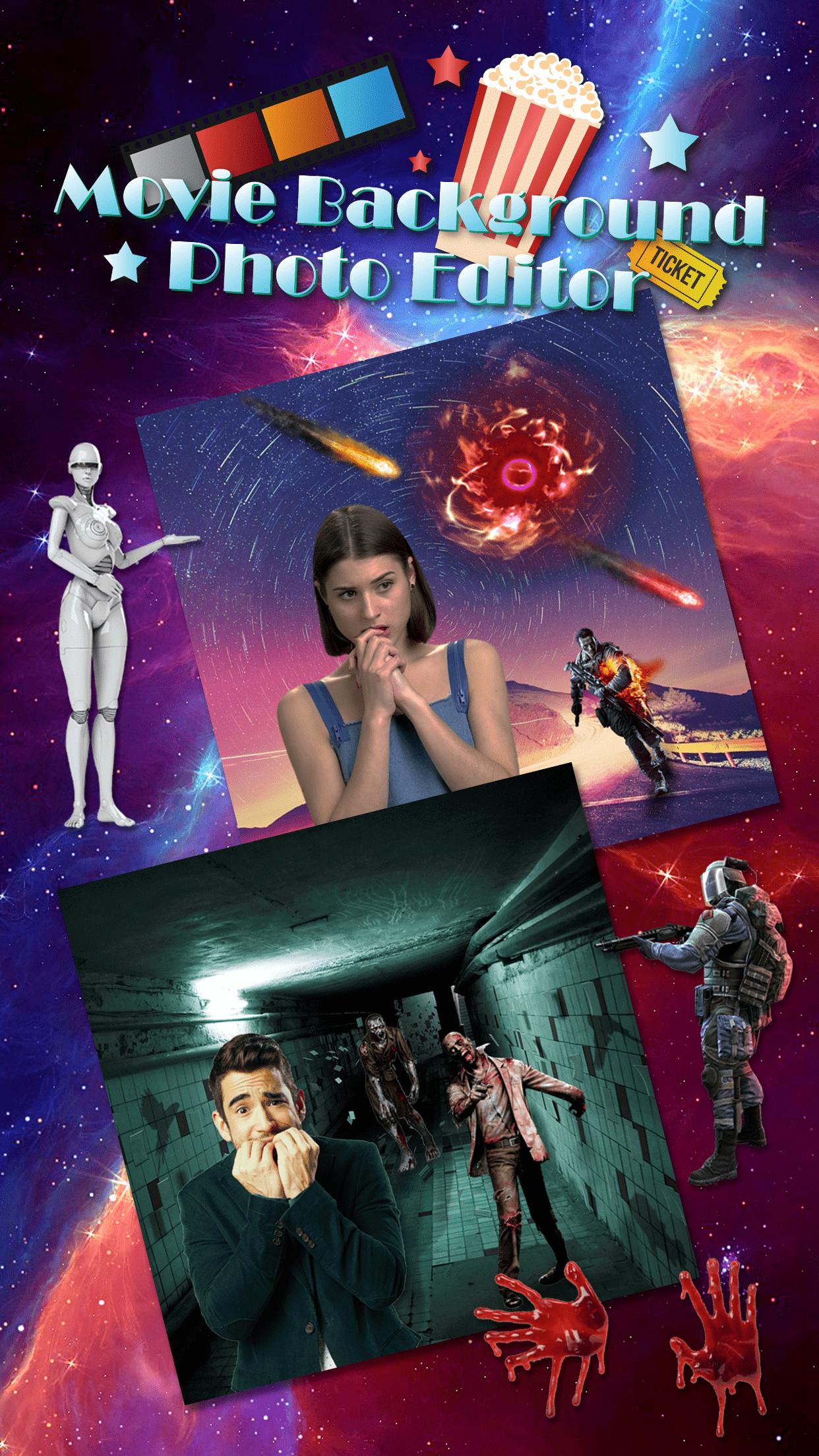 बम विस्फोट फोटो संपादक और फिल्म एफएक्स पृष्ठभूमि जैसे सर्वोत्तम फ़िल्टर खोजें। एक दिन के लिए एक फिल्म स्टार बनें और अपने सपनों की भूमिका निभाएं। हॉलीवुड की फिल्मों की तरह तस्वीर के पृष्ठभूमि परिवर्तक आपको एक सुपरहीरो बनने के लिए दिखाता है! अपने घर छोड़ने के बिना भी एक भूमिका निभाएं! फिल्म पृष्ठभूमि परिवर्तक में विभिन्न प्रभावों के साथ बस अपनी तस्वीर संपादित करें! अवास्तविक दृश्यों जैसे समुद्री डाकू या डरावनी थीम चुनें और उन्हें अपना आदर्श फोटो एफएक्स बनाएं। "खुद को सुपरहीरो" में संकोच न करें। फोटो संपादक फिल्म विषय के पृष्ठभूमि परिवर्तक का उपयोग करने के लिए यह अनूठा मौका लो! आपके पीछे एक मूवी पोस्टर पृष्ठभूमि जोड़कर नायक या नायिका की तरह दिखें। वास्तविक फिल्मों 3 डी प्रभाव प्राप्त करने के लिए एक "फिल्म फोटो फ्रेम" जोड़ें!