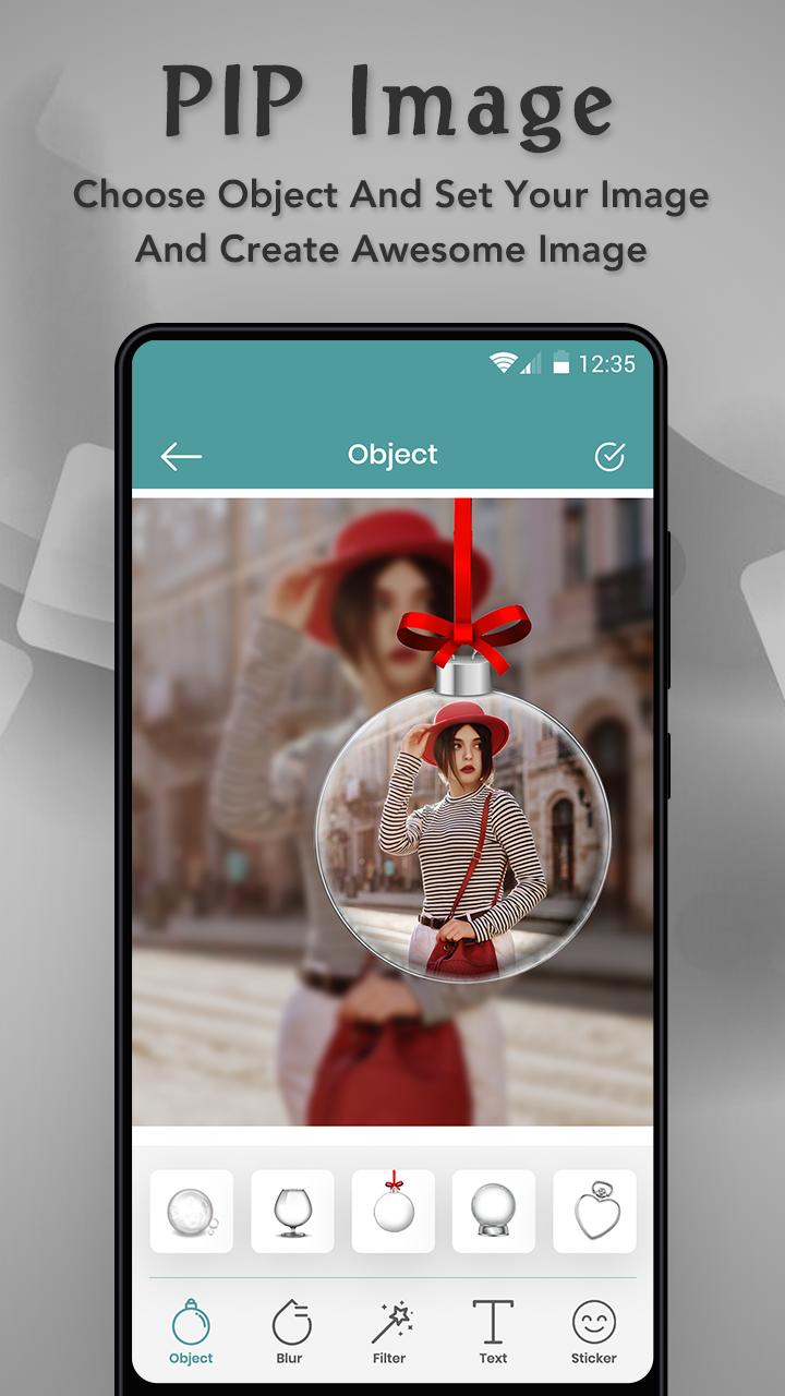 पीआईपी कैमरा इफ़ेक्ट एप्लिकेशन आपको ग्लास, जार, कैमरा, बोर्ड और कई अन्य में कैमरा प्रभाव देकर अपनी तस्वीर को और अधिक सुंदर बनाने की अनुमति देता है।