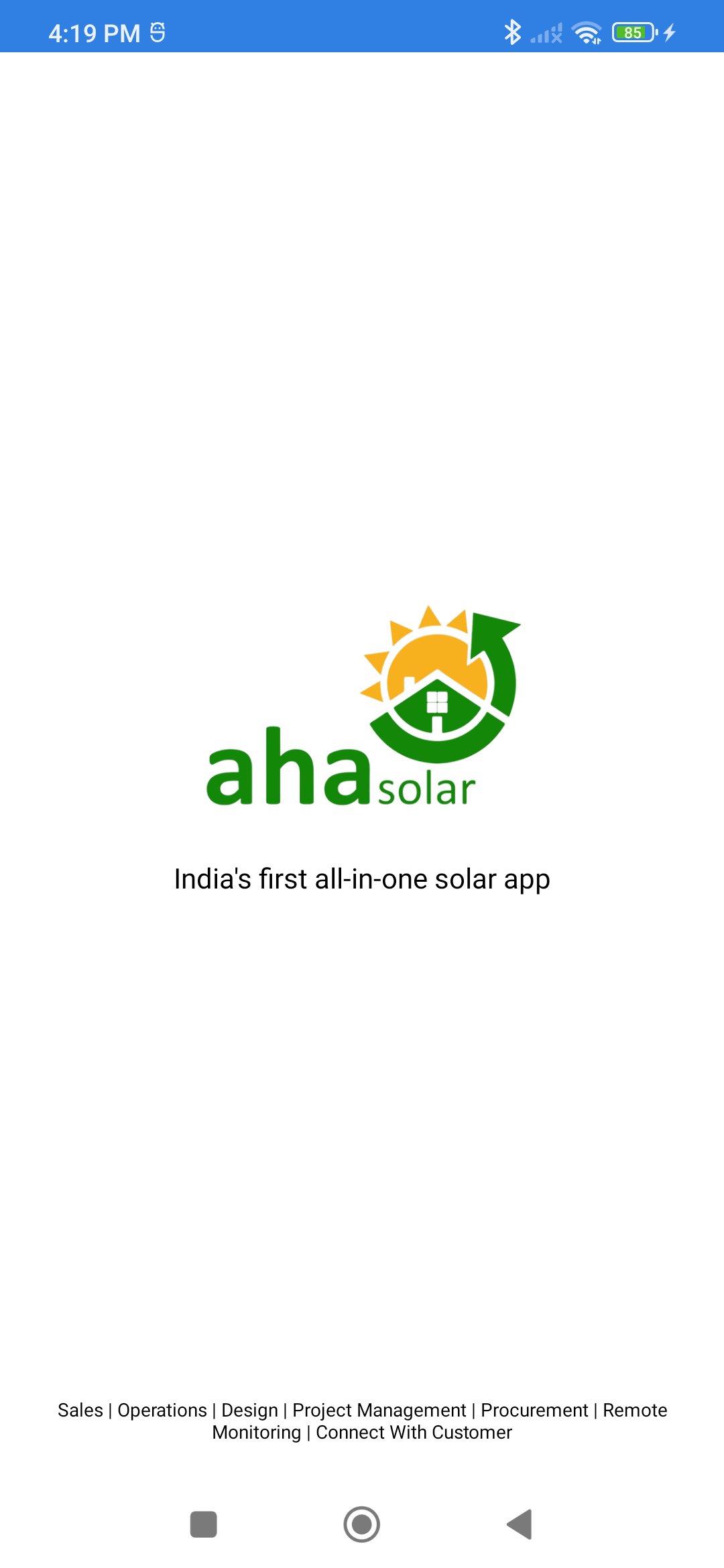 अहा! छत सौर हेल्पर अनुप्रयोग ( "अहा! सौर") एक सौर पीवी एप्लिकेशन अहा की एक पूरी तरह कार्यात्मक विस्तार है कि है! सौर ऑनलाइन मंच। अहा! सौर आप काम करते हैं और अपने तकनीकी और बिक्री आवश्यकता का प्रबंधन भी आप कर रहे हैं करने के लिए मदद करता है। अहा! सौर एक बाजार और एक साझा मंच उपभोक्ताओं, पीवी इंस्टॉलर वितरण कंपनियों और राज्य नोडल एजेंसियों जोड़ता है। एक साथ अहा के साथ ऑनलाइन मंच! सौर अनुप्रयोग के लिए अनुमति देता: