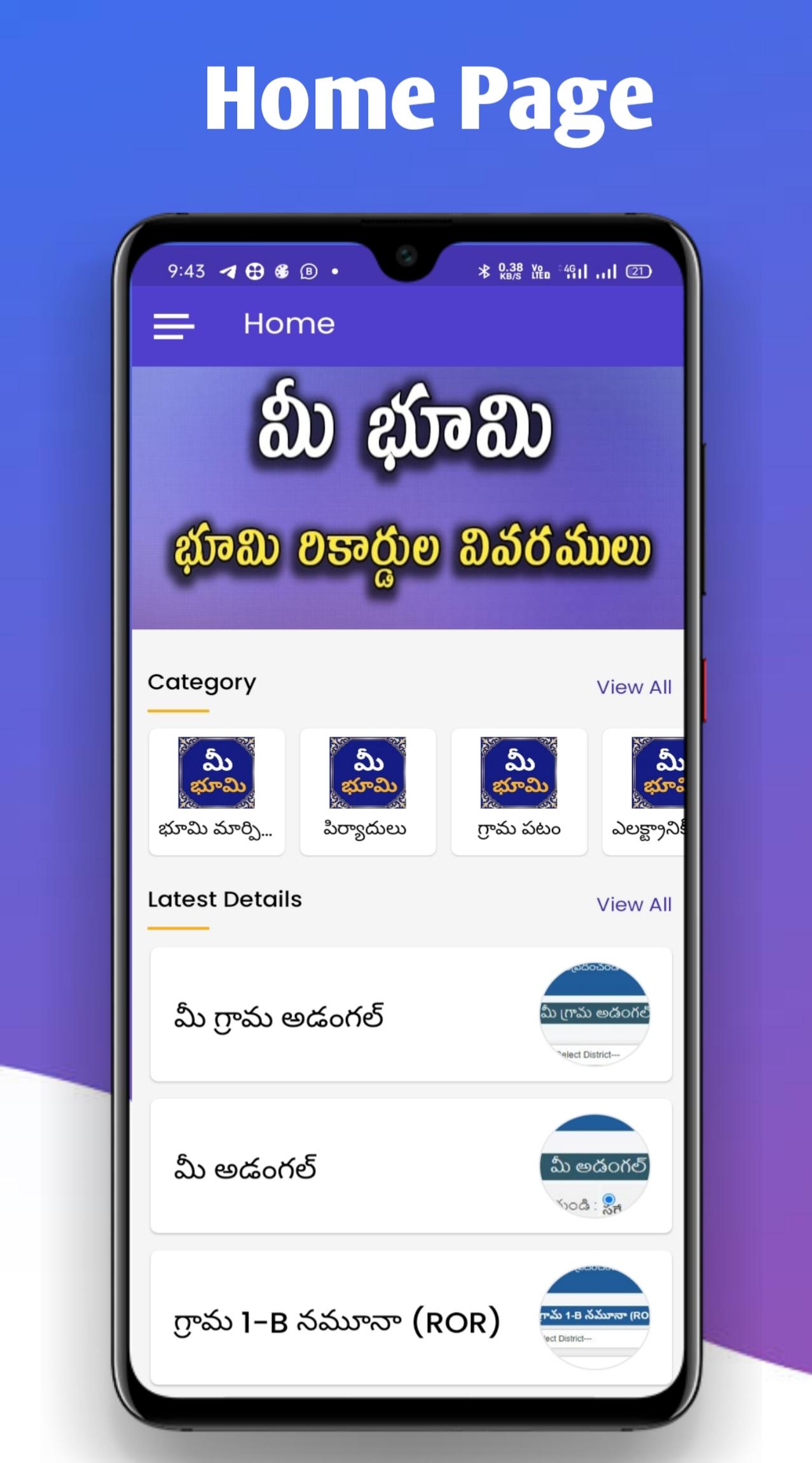 Mee Bhoomi ऐप को आंध्र प्रदेश भूमि रिकॉर्ड, तेलुगु की भाषा में ग्राम अडंगल विवरण के विवरण को जानने के उद्देश्य से बनाया गया है।
