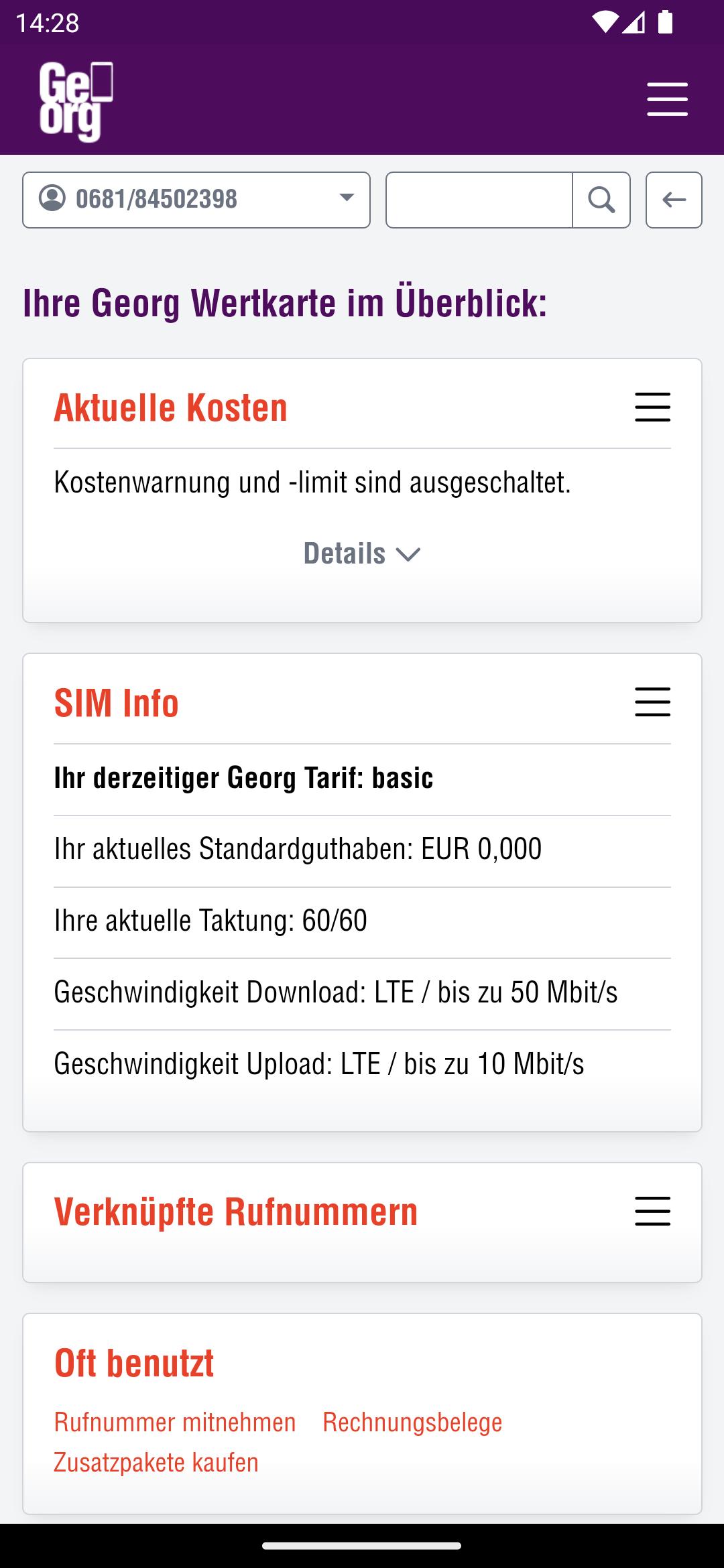 ऐप स्मार्टफोन और टैबलेट के लिए उपयुक्त है। खाता प्रबंधक तक ब्राउज़र https://kundencenter.georg.at/ के माध्यम से भी पहुँचा जा सकता है।