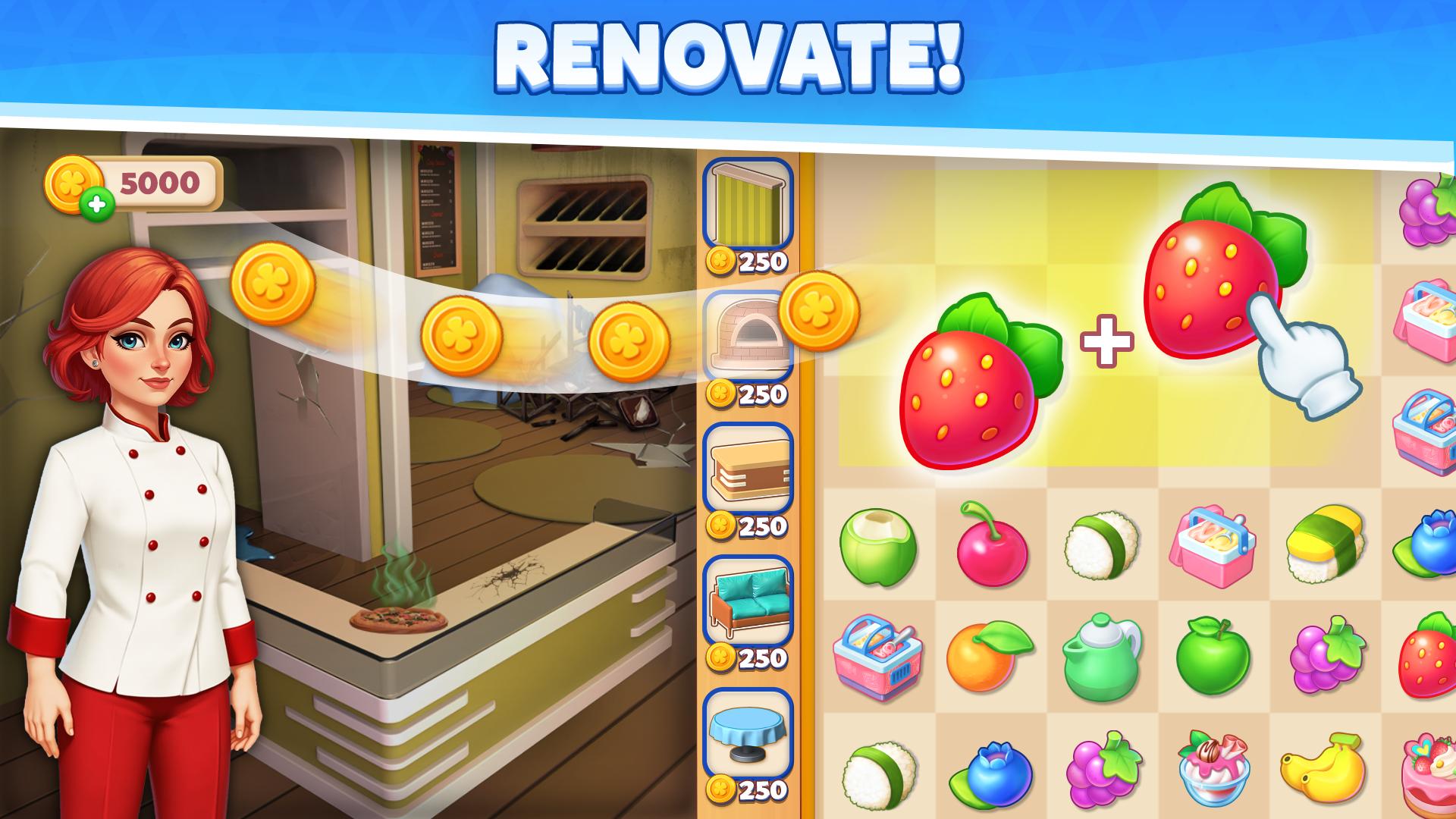 *भोजन मर्ज करें -> नई डिश बनाएं -> ऑर्डर परोसें -> अपने रेस्तरां और शहर को डिज़ाइन और नवीनीकृत करें!*