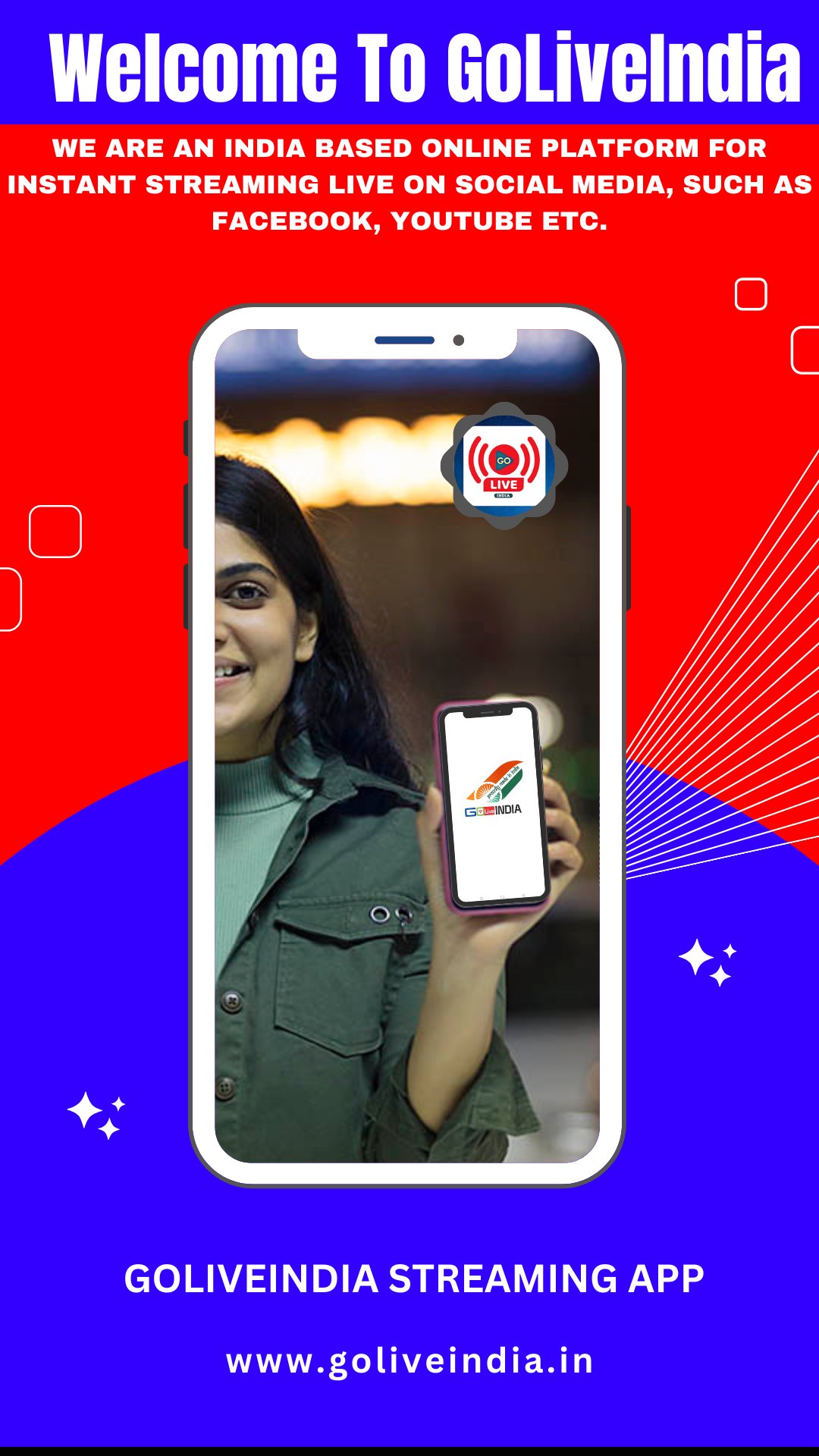GoLiveIndia फेसबुक, यूट्यूब, ट्विच आदि जैसे सोशल मीडिया पर तत्काल लाइव स्ट्रीमिंग के लिए एक भारत आधारित ऑनलाइन प्लेटफॉर्म है।