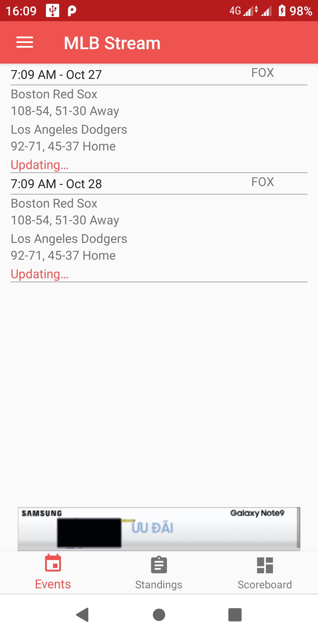 MLB Stream, डेवलपर DofuStream से आ रहा है, अतीत में Android सिस्टर्म पर चल रहा है।