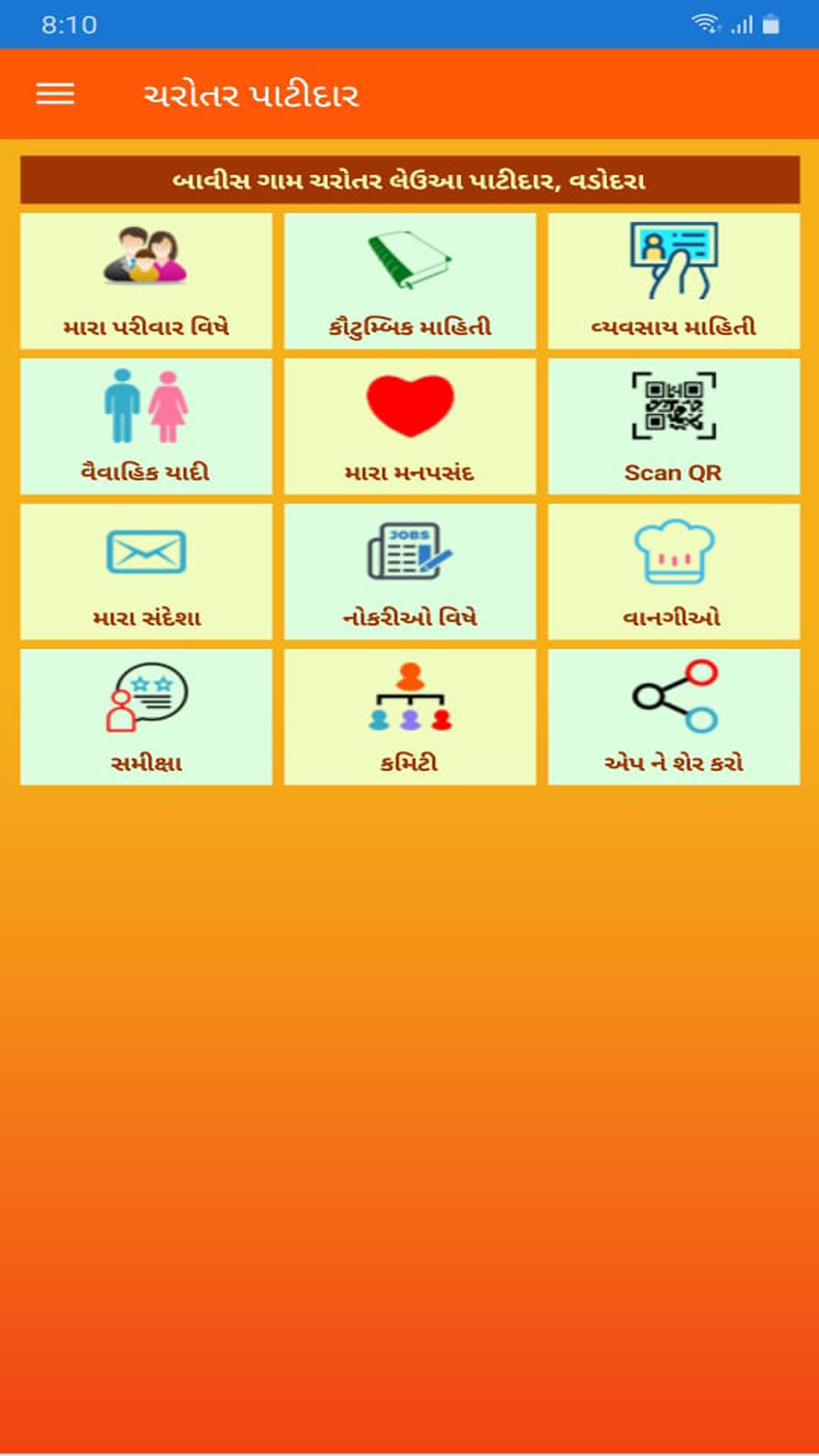 Citizens of Charotar are a unique Gujarati community. They are spread all over the world while still retaining a very strong attachment to their roots. In the days of yore, they yearned for the bond with their motherland but were impeded by sheer geographical distances. But, with the advent of technology there is a glorious opportunity for a platform to connect Charotar citizens across the globe. Charotar Patidar App is an interactive platform for the worldwide community of Charotar's patidar. This App catering exclusively to relationships within the community, by focusing on Relatives, Organizations, businesses etc.