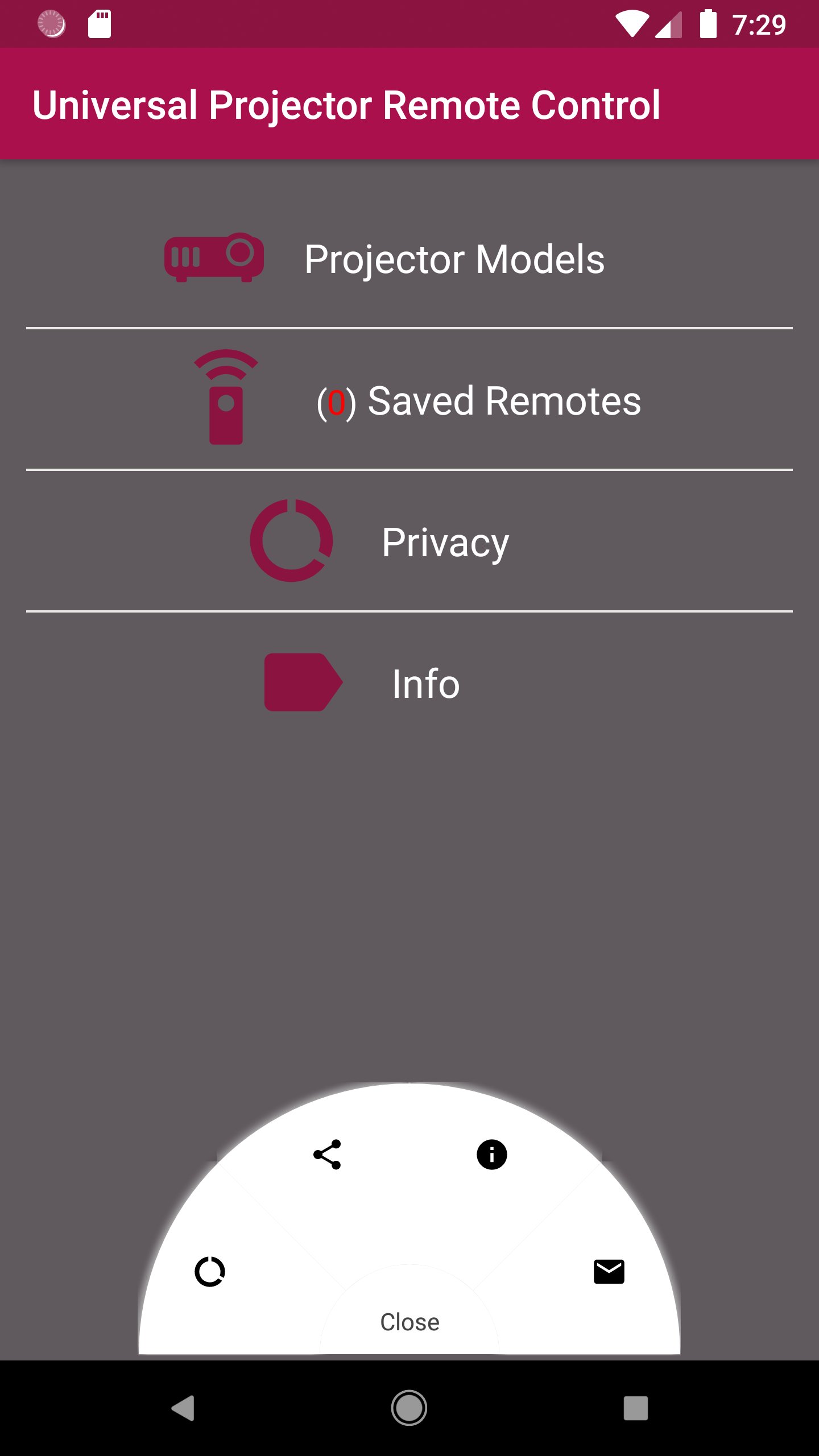 Universal Projector Remote, डेवलपर Lets Control से आ रहा है, अतीत में Android सिस्टर्म पर चल रहा है।