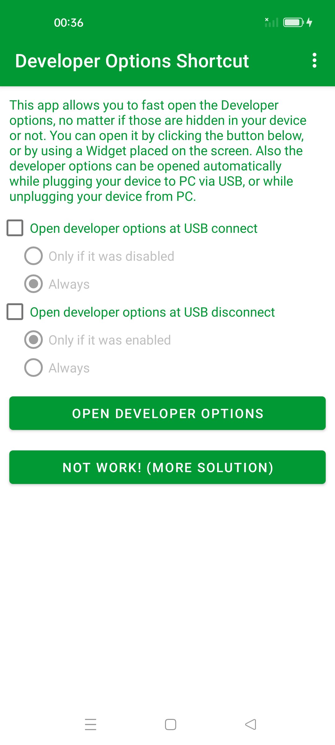 यह ऐप आपको डेवलपर विकल्पों को तेजी से खोलने की अनुमति देता है। डेवलपर विकल्प खोलने के लिए मानक चरण सेटिंग > डेवलपर विकल्प हैं।