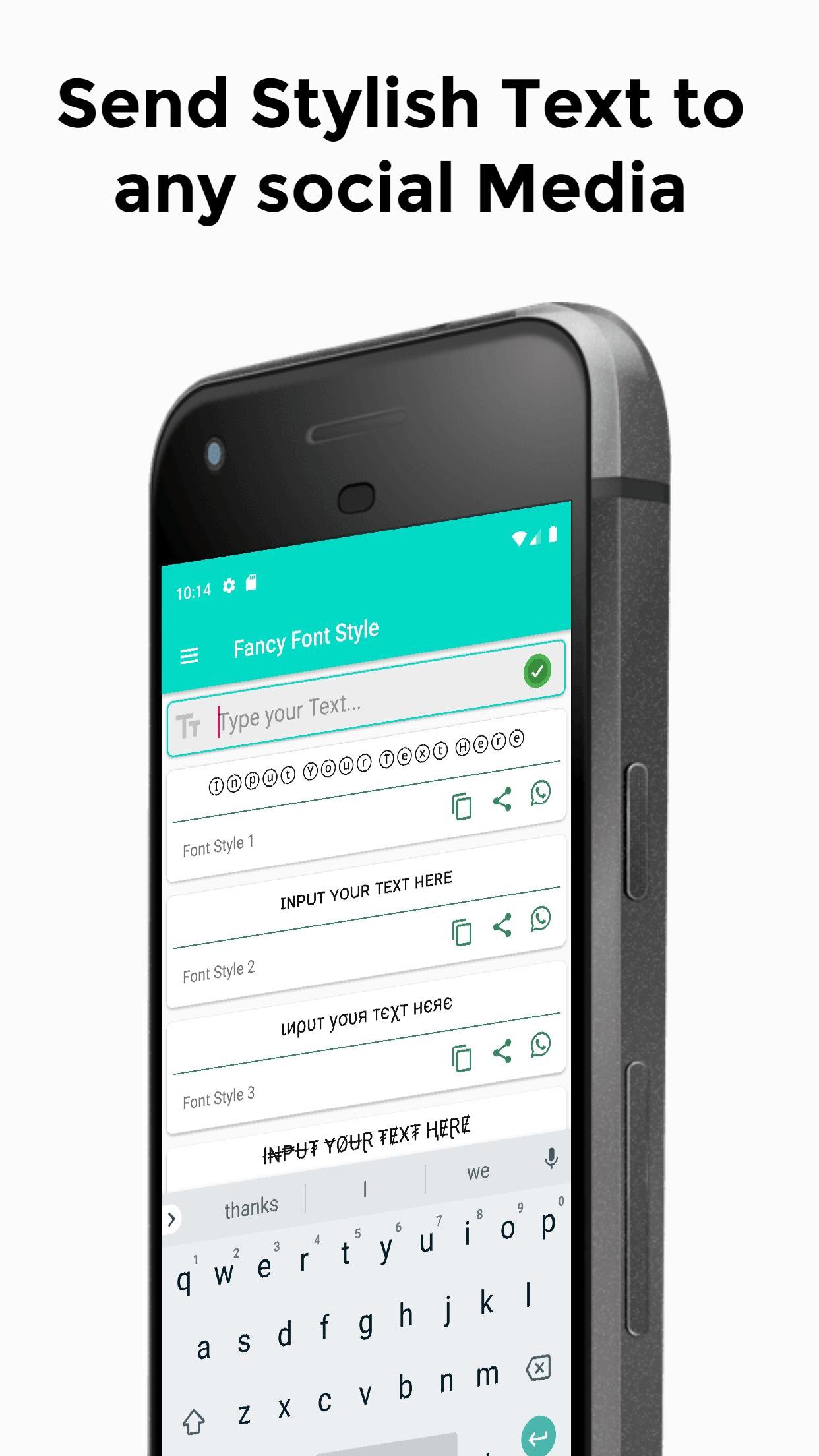 • कीबोर्ड मोड — कर्सिव, बोल्ड, स्क्रिप्ट और और फ़ॉन्ट्स सीधे टाइप करें।